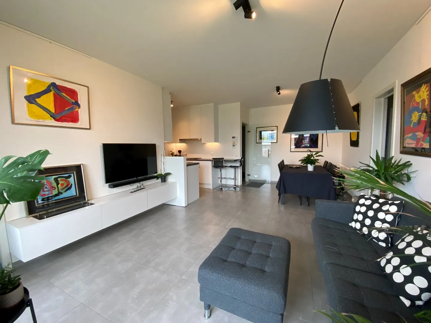 Inkomhal - gastentoilet - ruime lichtrijke leefruimte met open keuken - bergruimte met aansluiting wasmachine - ruime slaapkamer - badkamer met lavabo en inloopdouche.