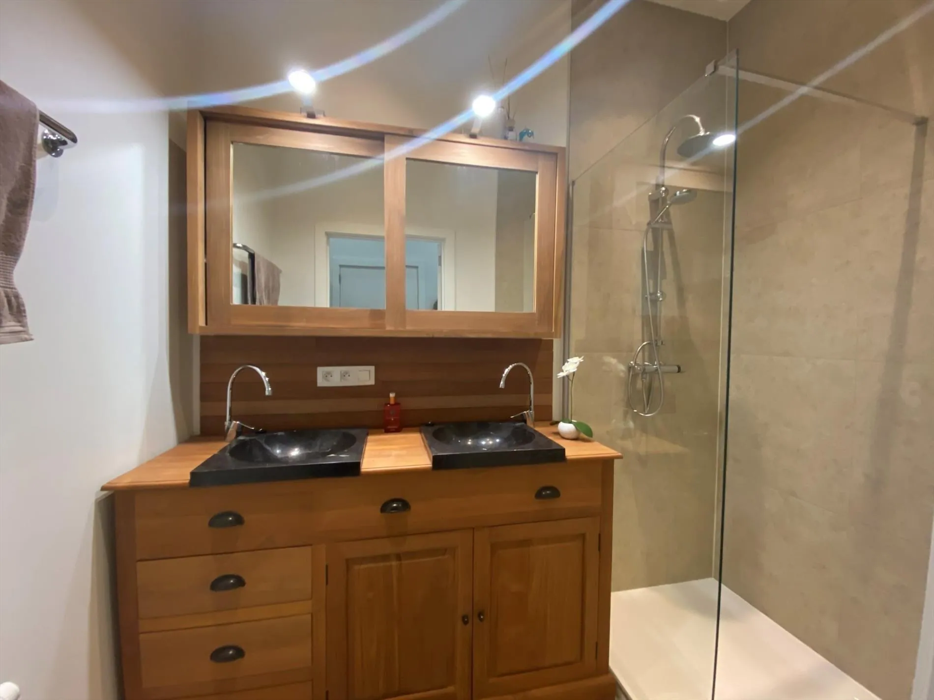 Inkomhal - gastentoilet - ruime berging - badkamer met inloopdouche en dubbele wastafel - 2 ruime slaapkamers - grote tuin.