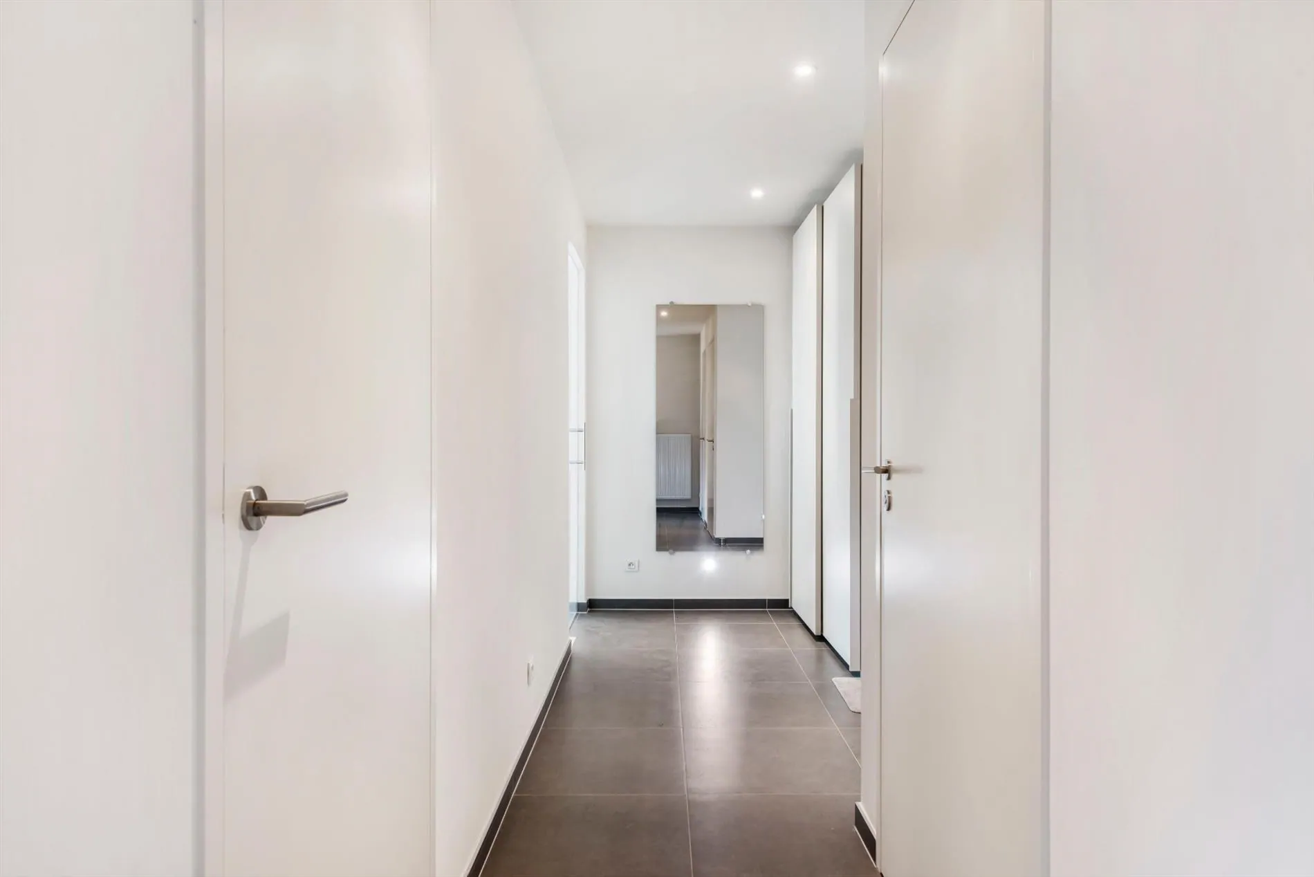 Inkomhal met dressing en gastentoilet - ruime lichtrijke leefruimte met volledig ingerichte keuken met eiland - 2 aansluitende terras met zicht op het binnenplein - CV-lokaal met waterontkalker - ruime wasplaats/berging - grote slaapkamer (18m²) met oostgericht terras - ruime aansluitende badkamer met toilet, inloopdouche en dubbel badkamermeubel - tweede slaapkamer (12m²) - aansluitende badkamer met inloopdouche en enkel badkamermeubel.