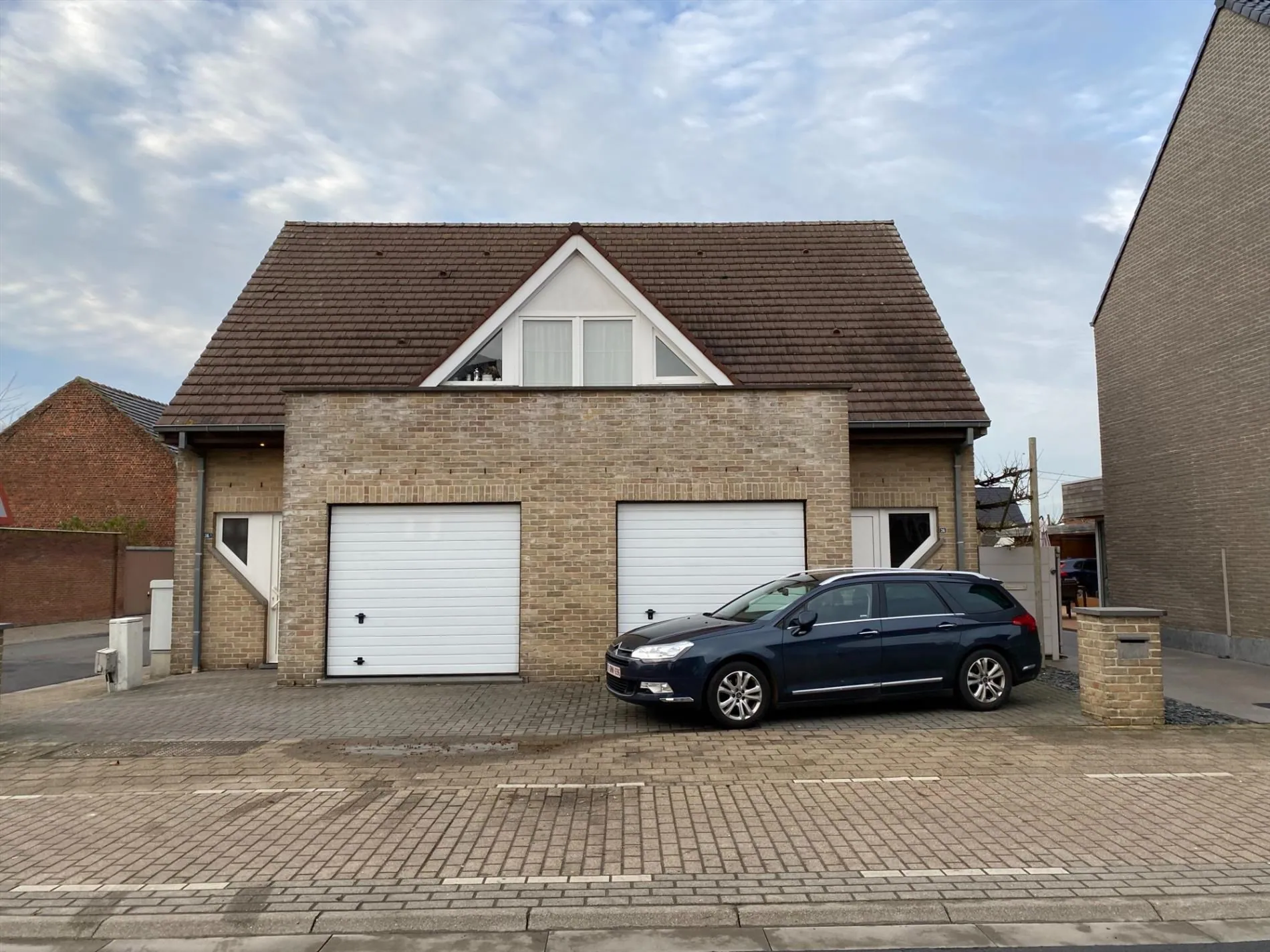 Inkomhal met gastentoilet - ruime garage met sectionaalpoort - lichtrijke keuken met open ingerichte keuken - 2 ruime slaapkamers - badkamer met ligbad en wastafel.
