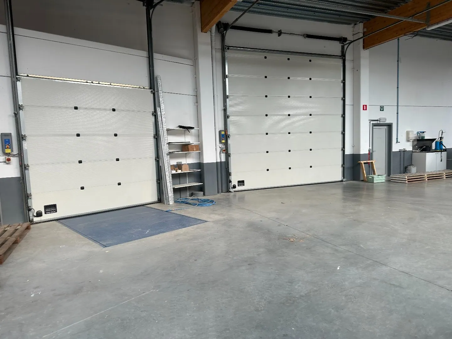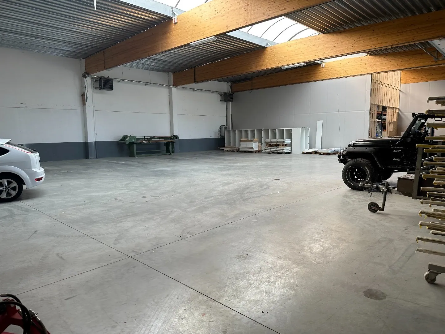 De loods is voorzien van een polybetonvloer, een lichtstraat, verwarming, drijfkracht en toilet.