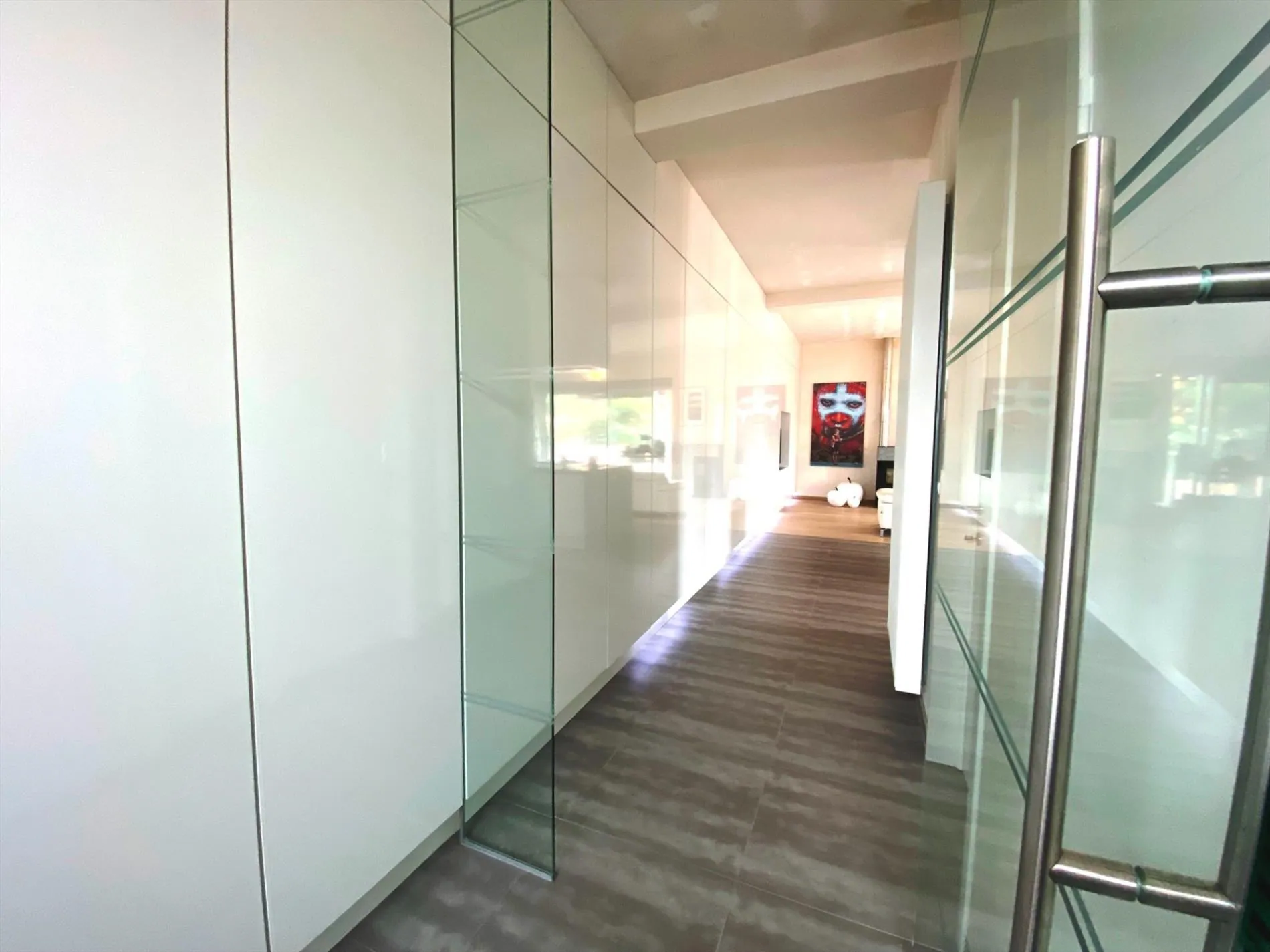 Inkomhal met inbouwkasten - ruime lichtrijke leefruimte met ingerichte, open keuken - slaapkamer/bureau - toilet - wasplaats - badkamer met inloopdouche, dubbele wastafel en toilet - ruime slaapkamer met inbouwkasten.