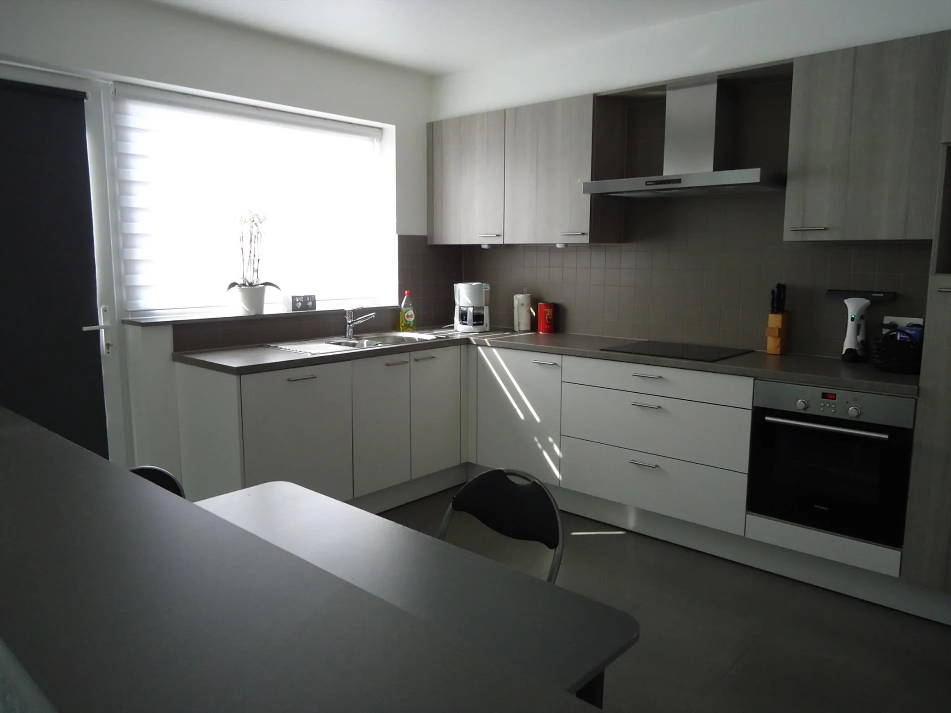 °Gelijkvloers: Inkomhal met apart toilet - ruime lichtrijke living - open ingerichte keuken - garage - zongerichte tuin met terras