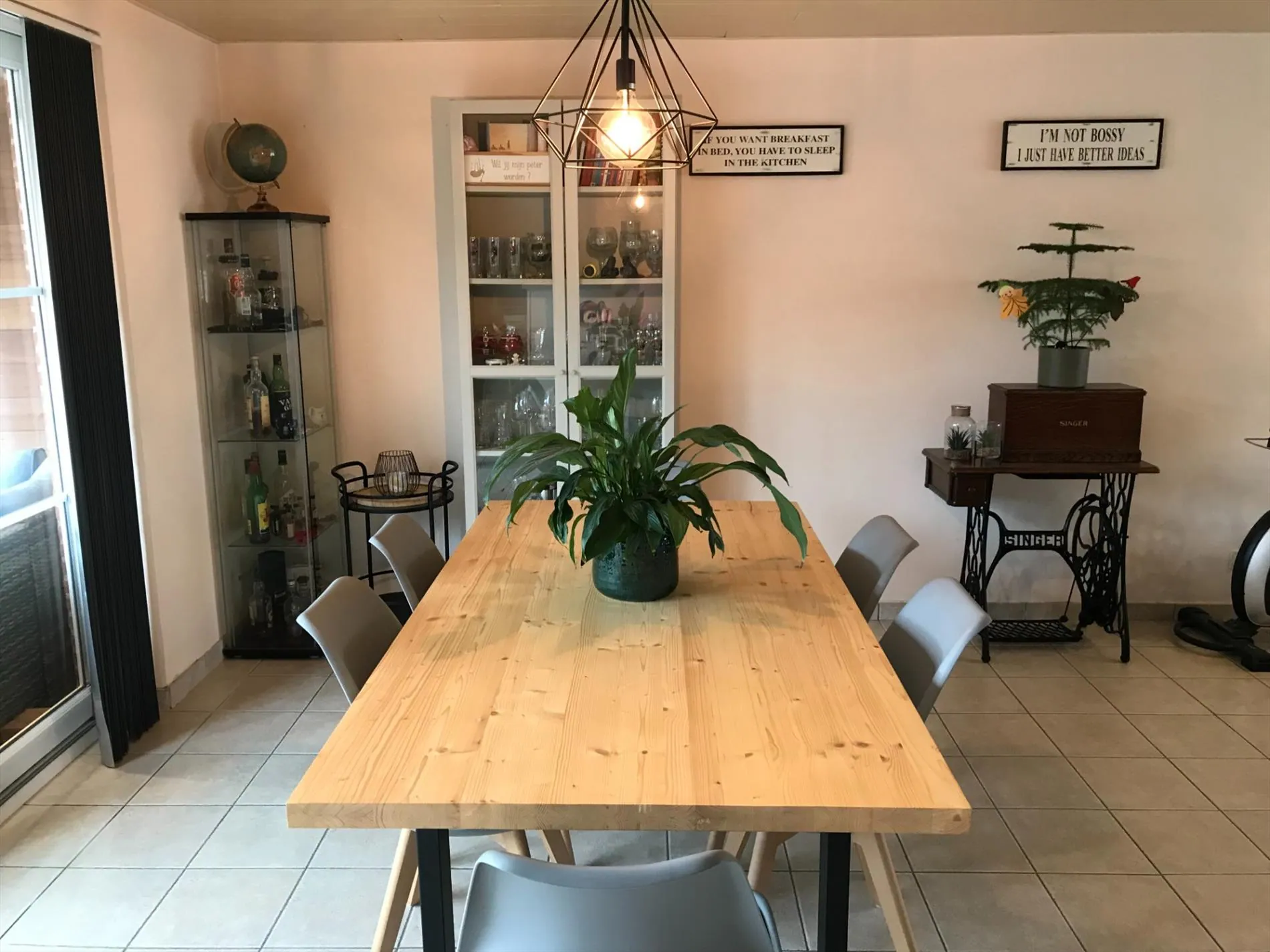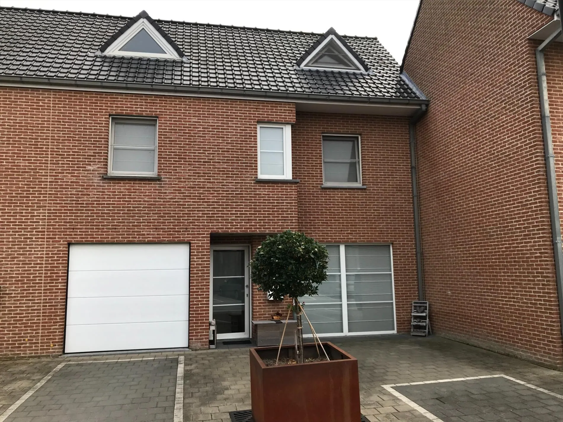 Gelijkvloers: inkomhal met gastentoilet - ruime lichtrijke leefruimte - aansluitende open, volledig ingerichte leefkeuken (21m²) - garage met sectionaalpoort.