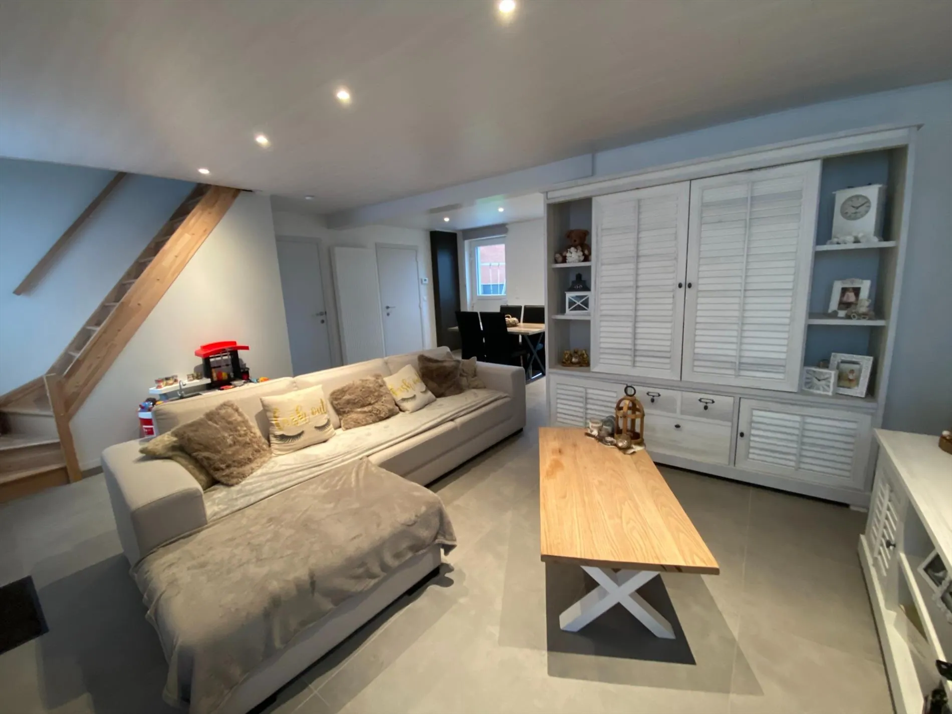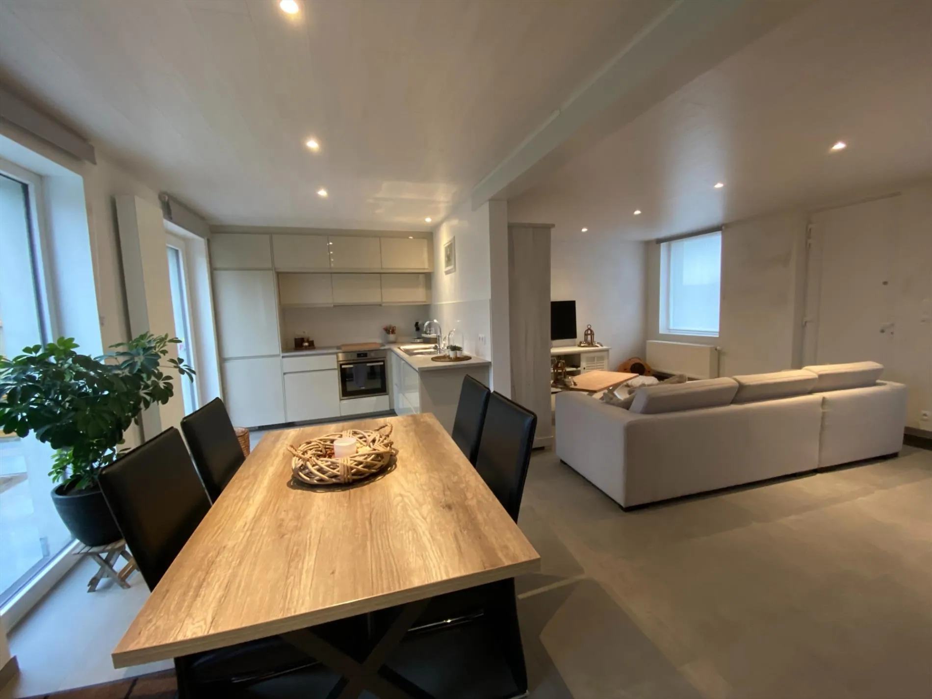 Gelijkvloers: Ruime leefruimte met open, ingerichte keuken - badkamer met douche, wastafel en toilet - slaapkamer 1.