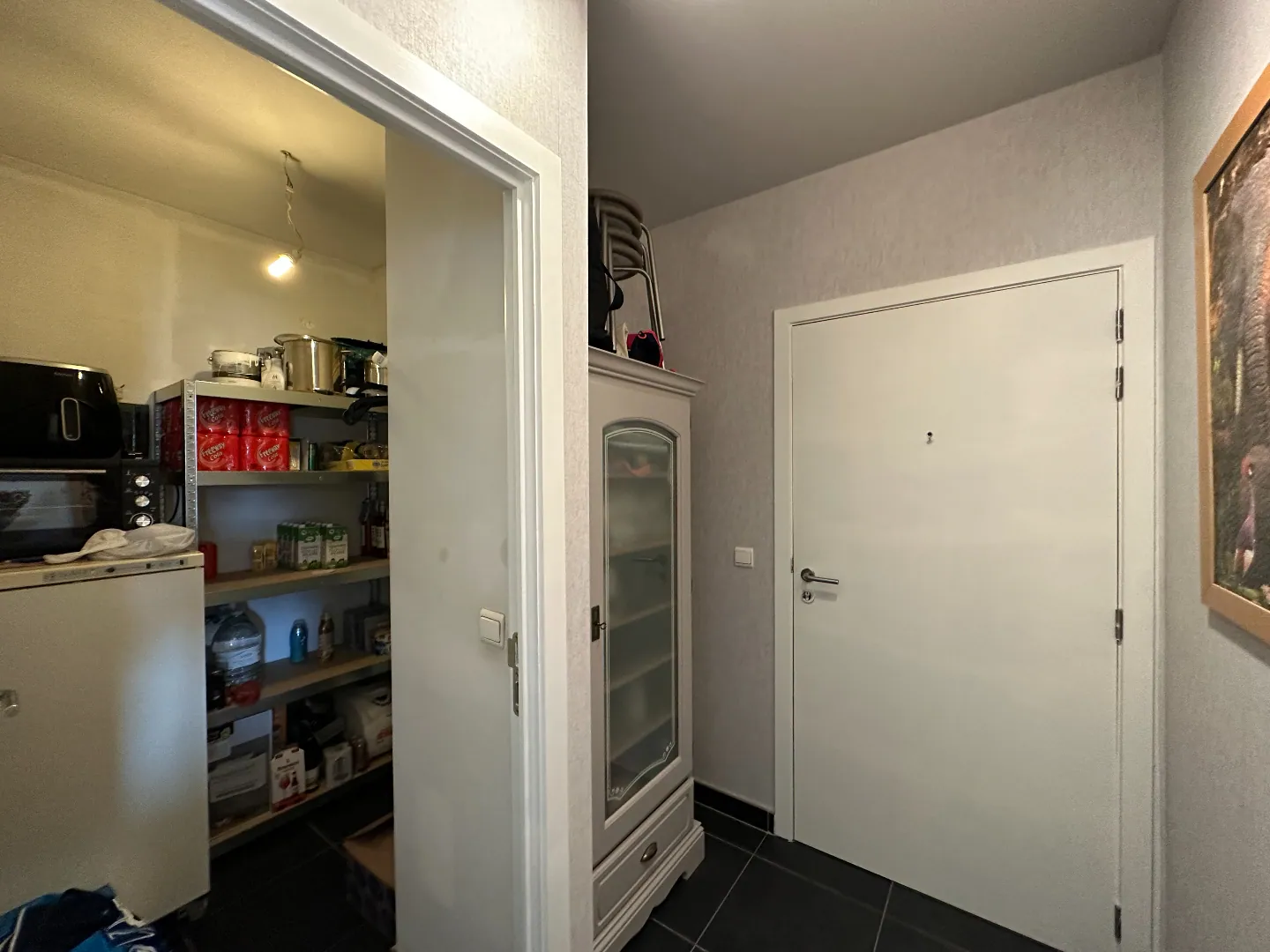 Inkomhal - ruime berging - leefruimte met open, ingerichte keuken - 2 slaapkamers - apart toilet - badkamer - 2 terrassen.