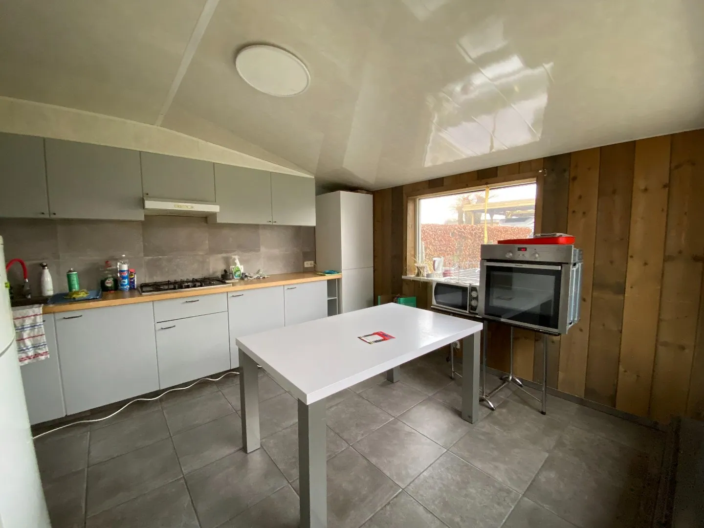 Gelijkvloers: Leefruimte - keuken - wasplaats - badkamer met douche en toilet - slaapkamer 1 - ruime tuin.