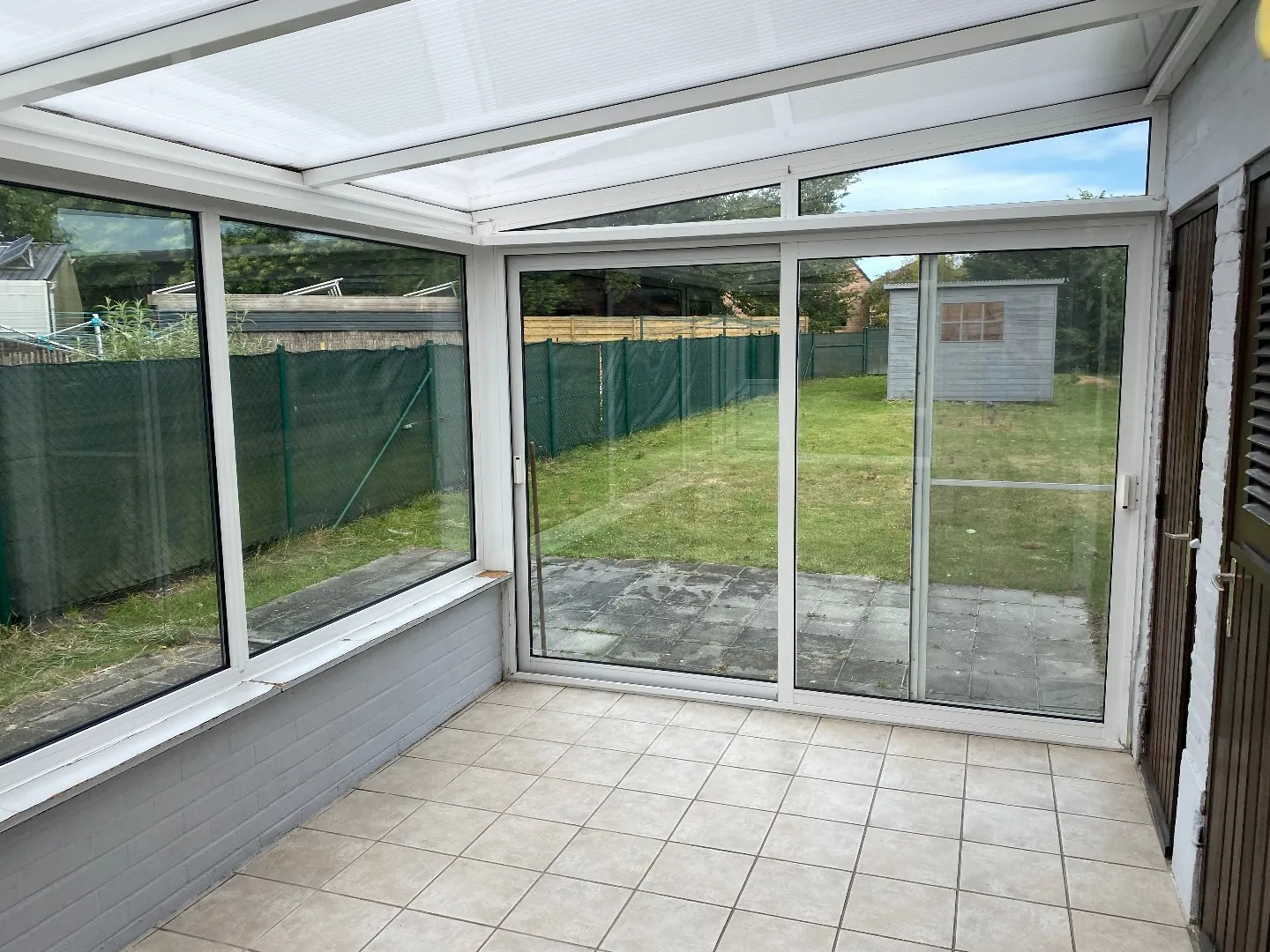 Gelijkvloers: Voorplaats/handelsruimte - garage/werkplaats - gang - ruime leefruimte - keuken - badkamer - veranda