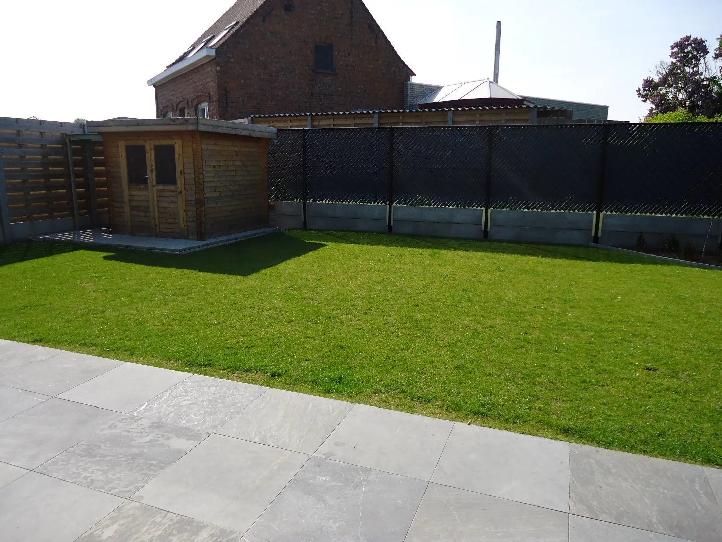 °Gelijkvloers: Inkomhal met apart toilet - ruime lichtrijke living - open ingerichte keuken - garage - zongerichte tuin met terras
