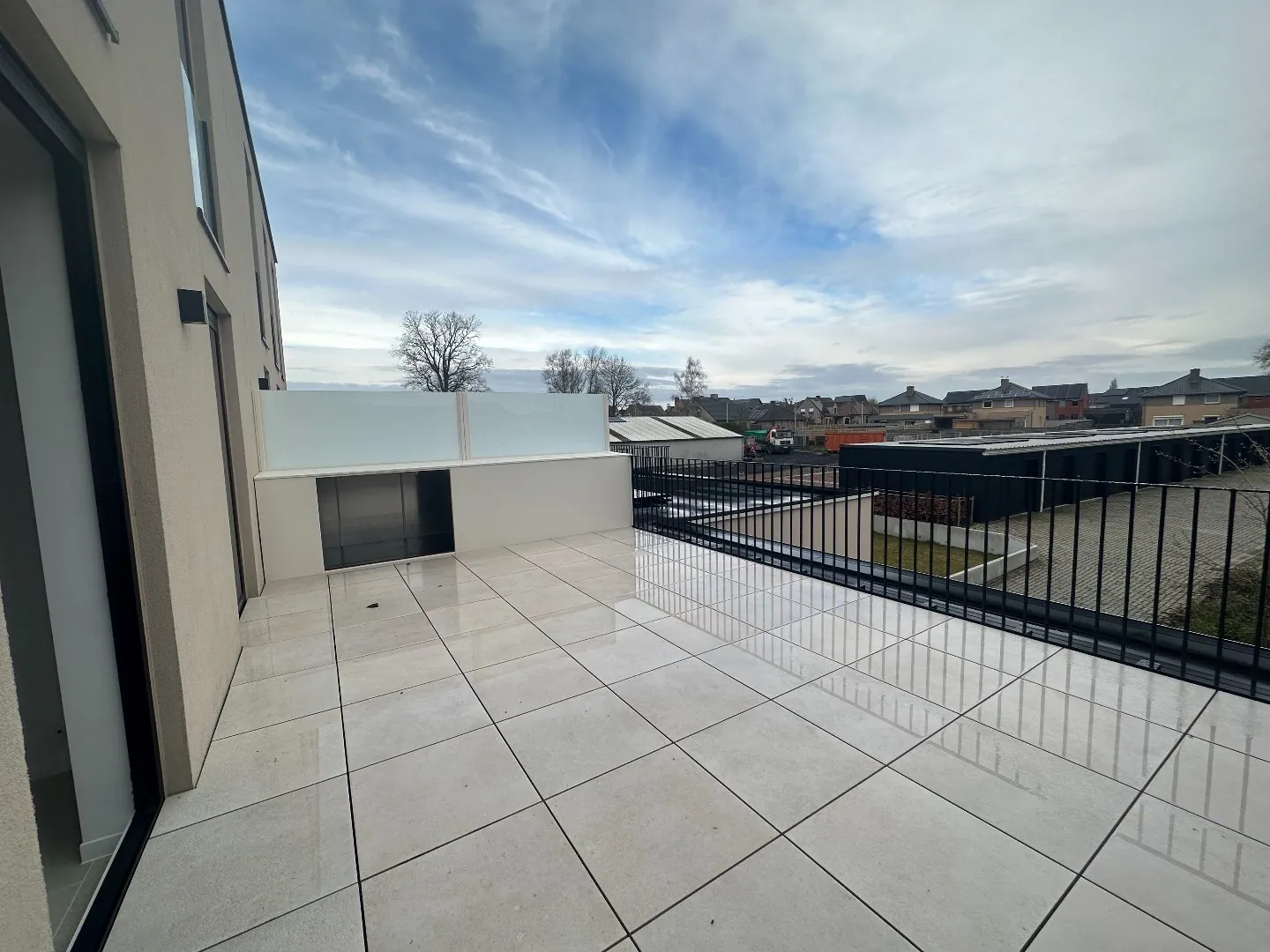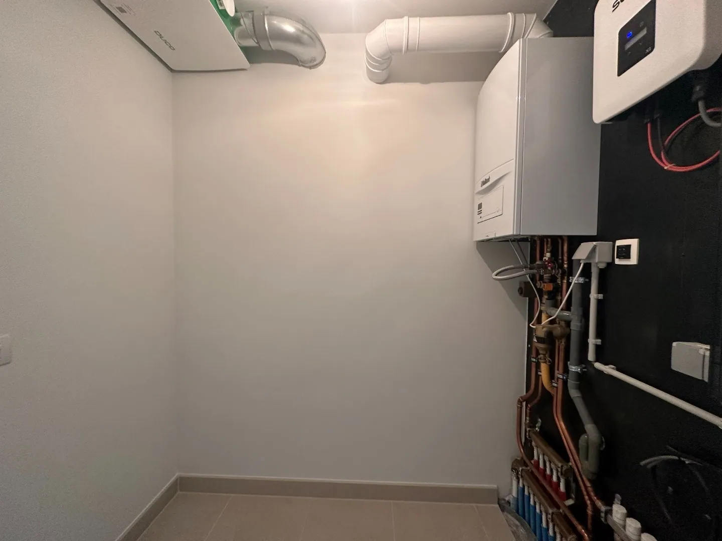 Inkomhal - apart toilet - 2 ruime slaapkamers (16 m² en 9,50 m²) - technische berging - badkamer met inloopdouche, ligbad en dubbele wastafel - leefruimte (35 m²) met parketvloer en open, volledig ingerichte keuken.