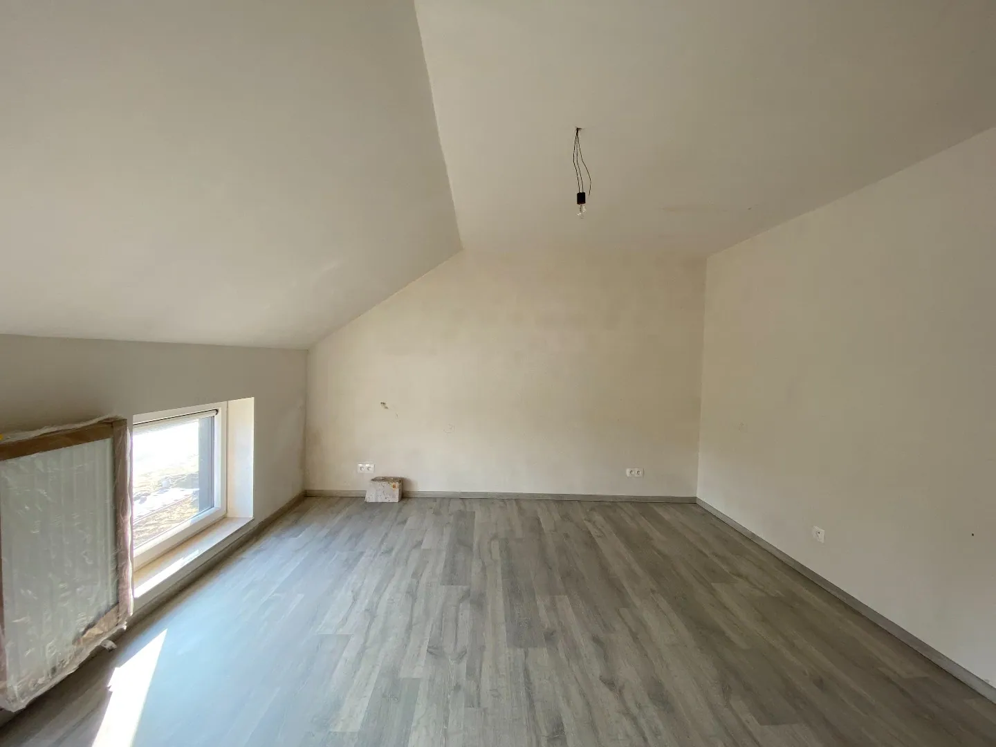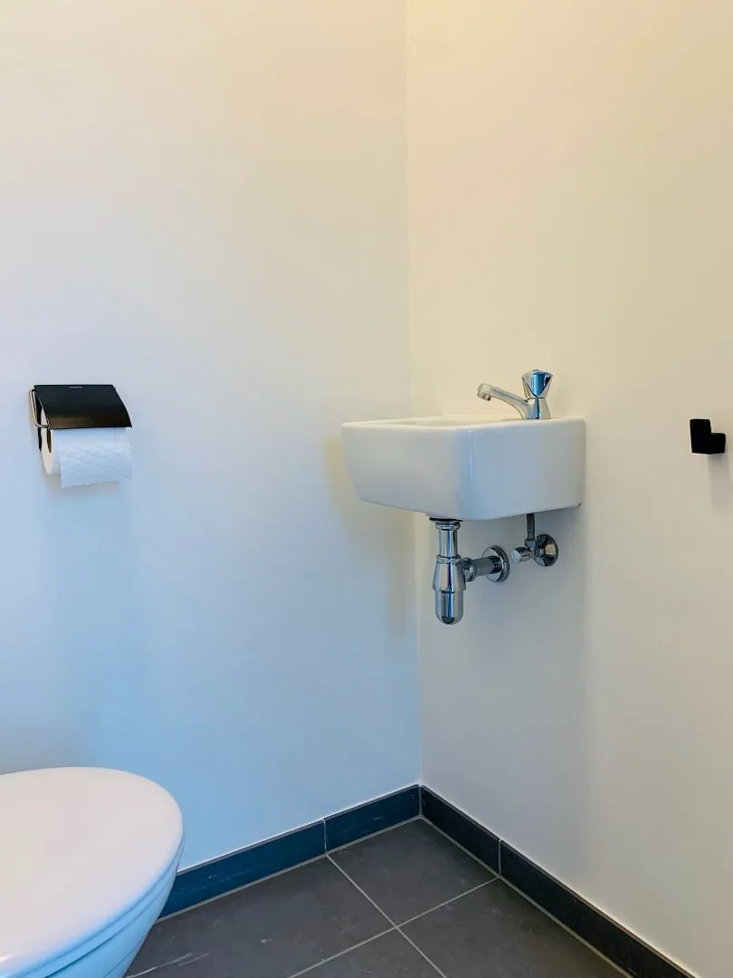 gelijkvloers: inkomhal met gastentoilet - zonnige leefruimte met open ingerichte keuken - bergruimte.
