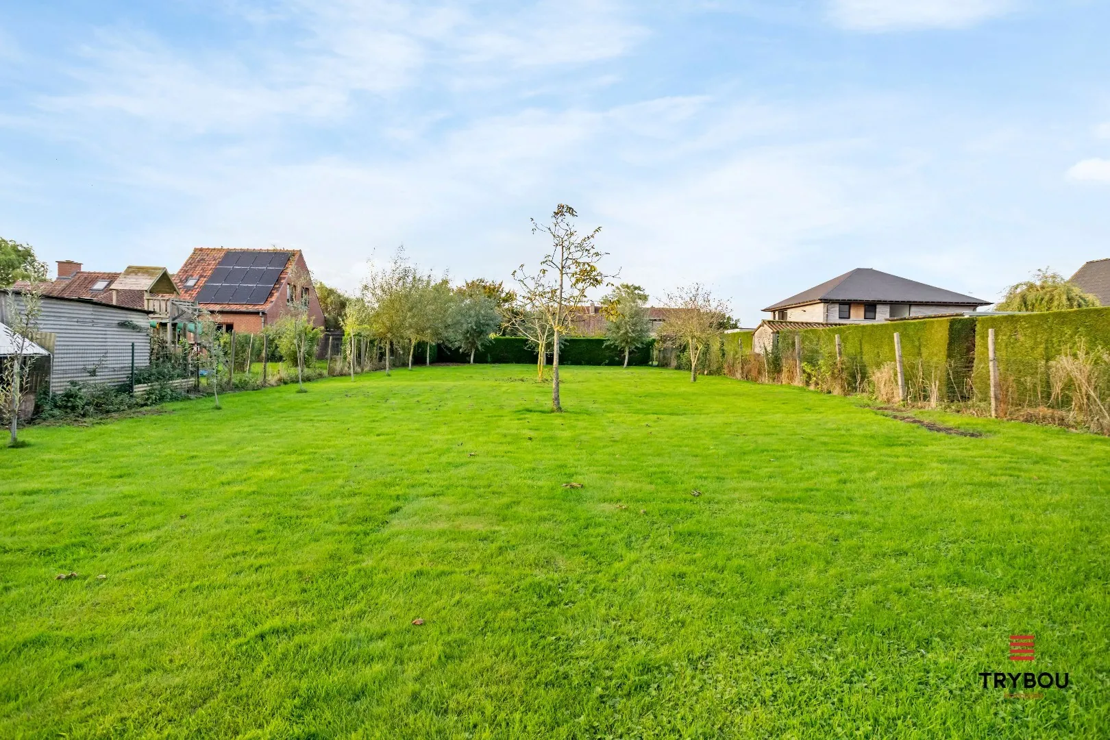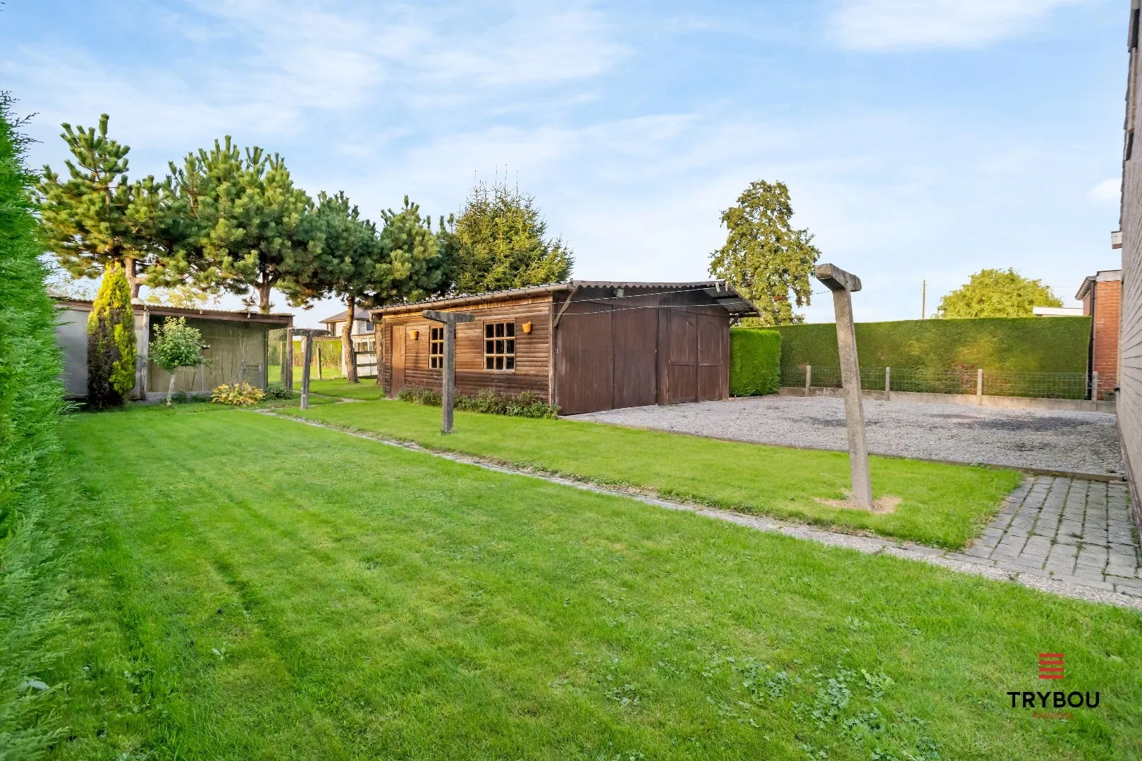Grote tuin met vrijstaande dubbele garage