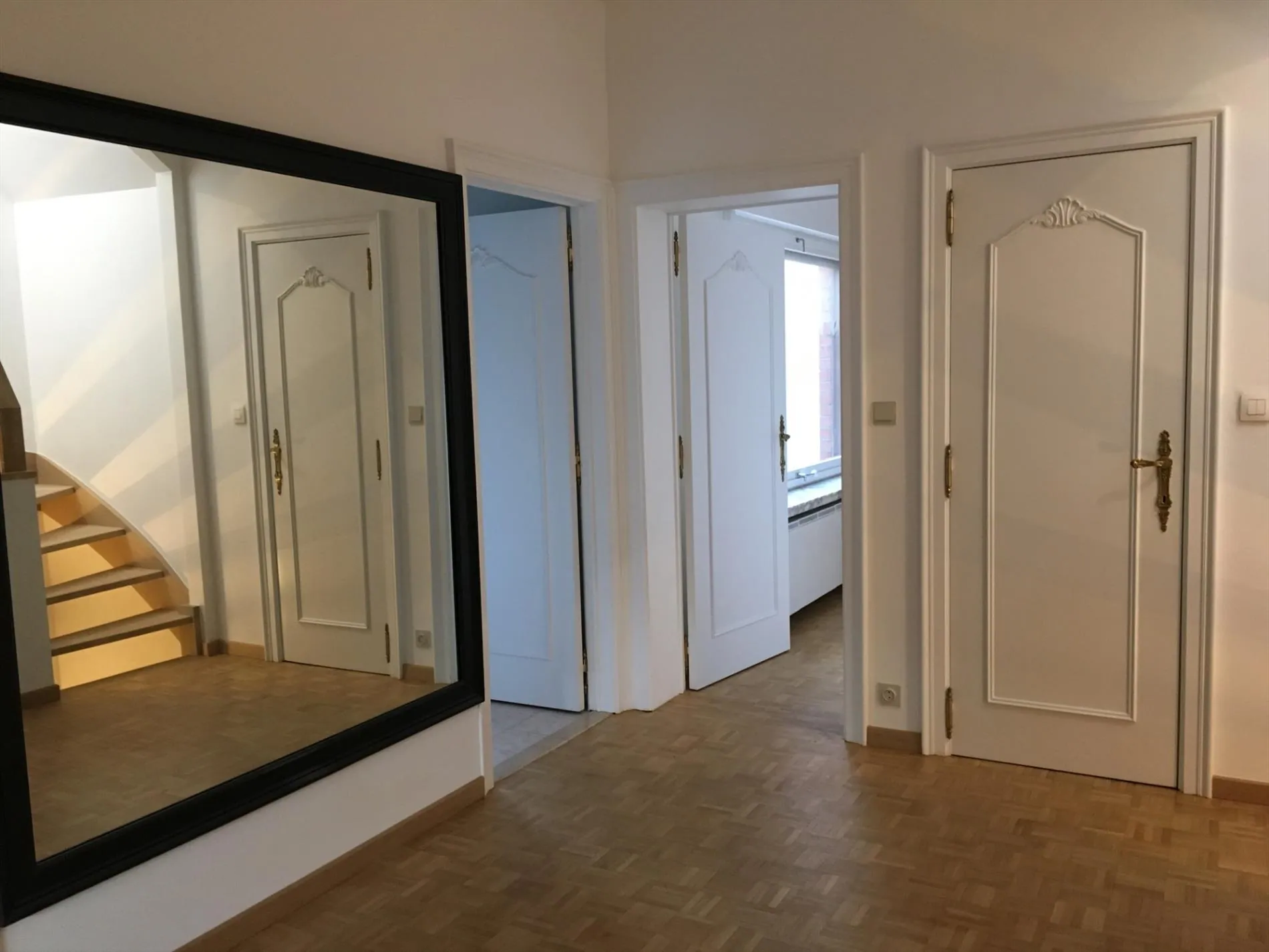 Gelijkvloers: inkomhal - gastentoilet - bureau/slaapkamer met inbouwkast - garage - ruime bergplaats - kleine berging/vestiaire