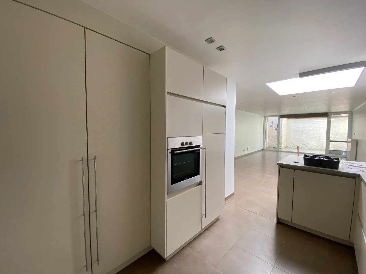 - Gelijkvloers: inkomhal met afzonderlijk gastentoilet - ruime lichtrijke leefruimte - open ingerichte keuken - garage - kelder - stadskoer