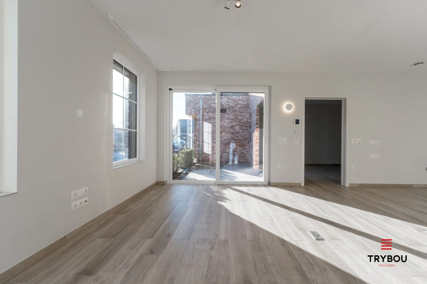 De woning is volledig gelijkvloers en drempelloos ingericht. De lichtrijke leefruimte met open keuken vormt het hart van de woning, afgewerkt met kwaliteitsvolle materialen en een warme parketlook vloer. Grote ramen zorgen voor een overvloed aan natuurlijk licht en een aangenaam binnenklimaat.