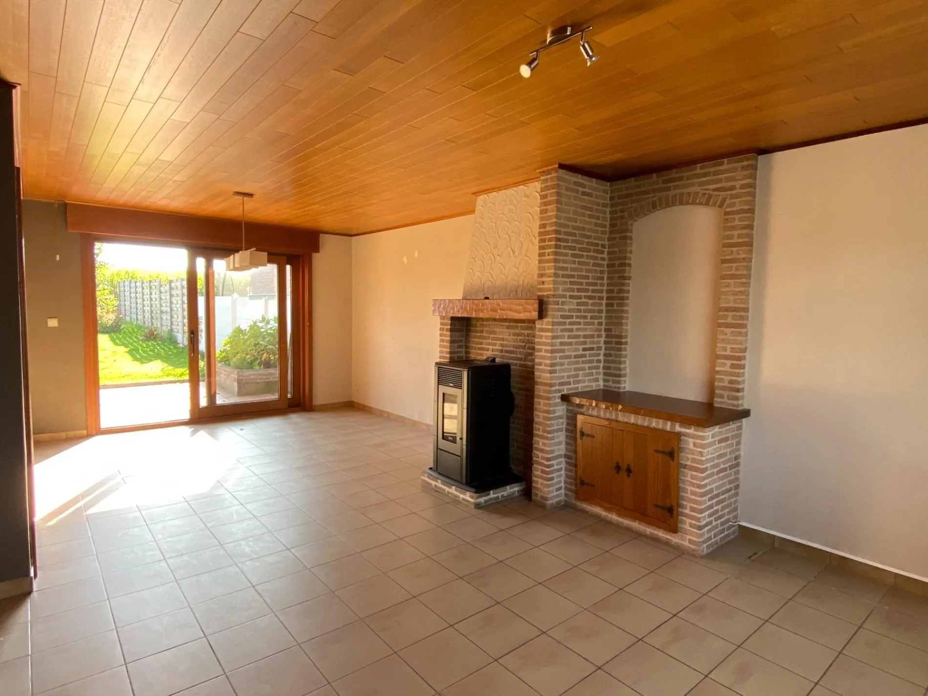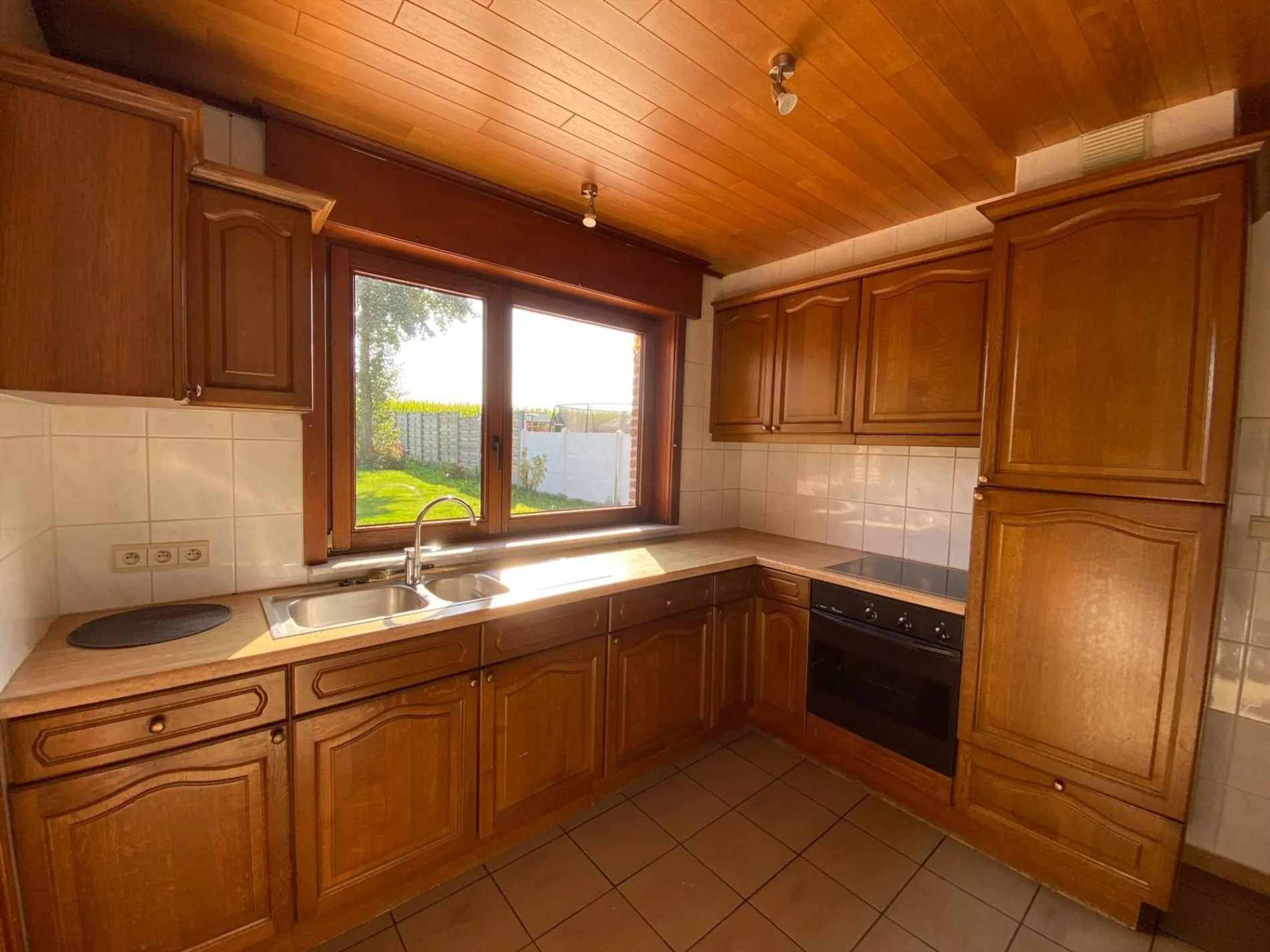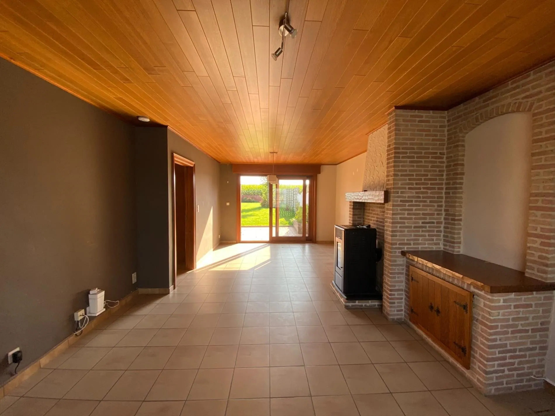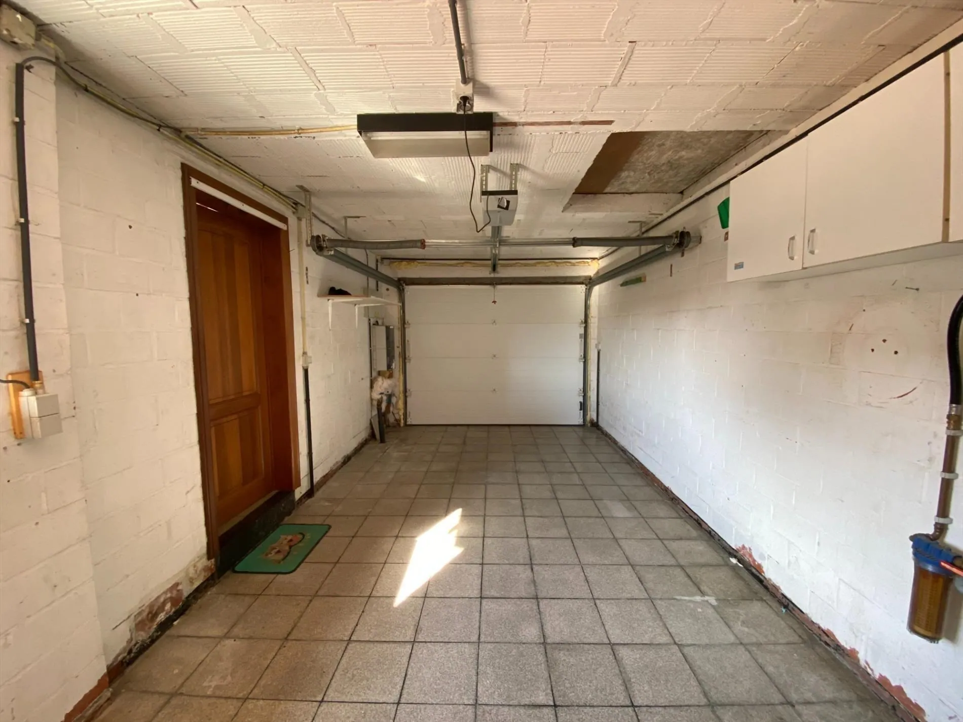 Gelijkvloers: inkomhal - toilet - leefruimte met pelletkachel - ingerichte keuken - berging - garage.