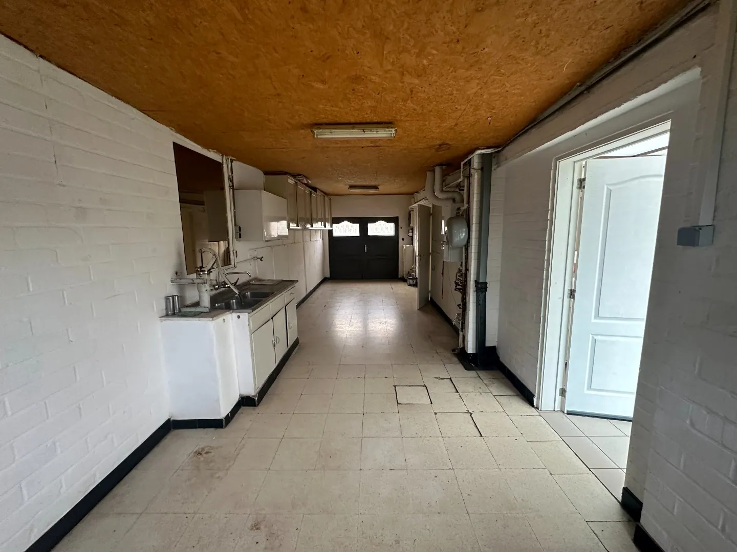 Gelijkvloers: Inkomhal - gastentoilet - ruime leefruimte met aansluitende veranda - uitgeruste keuken - kelderberging - ruime dubbele garage.