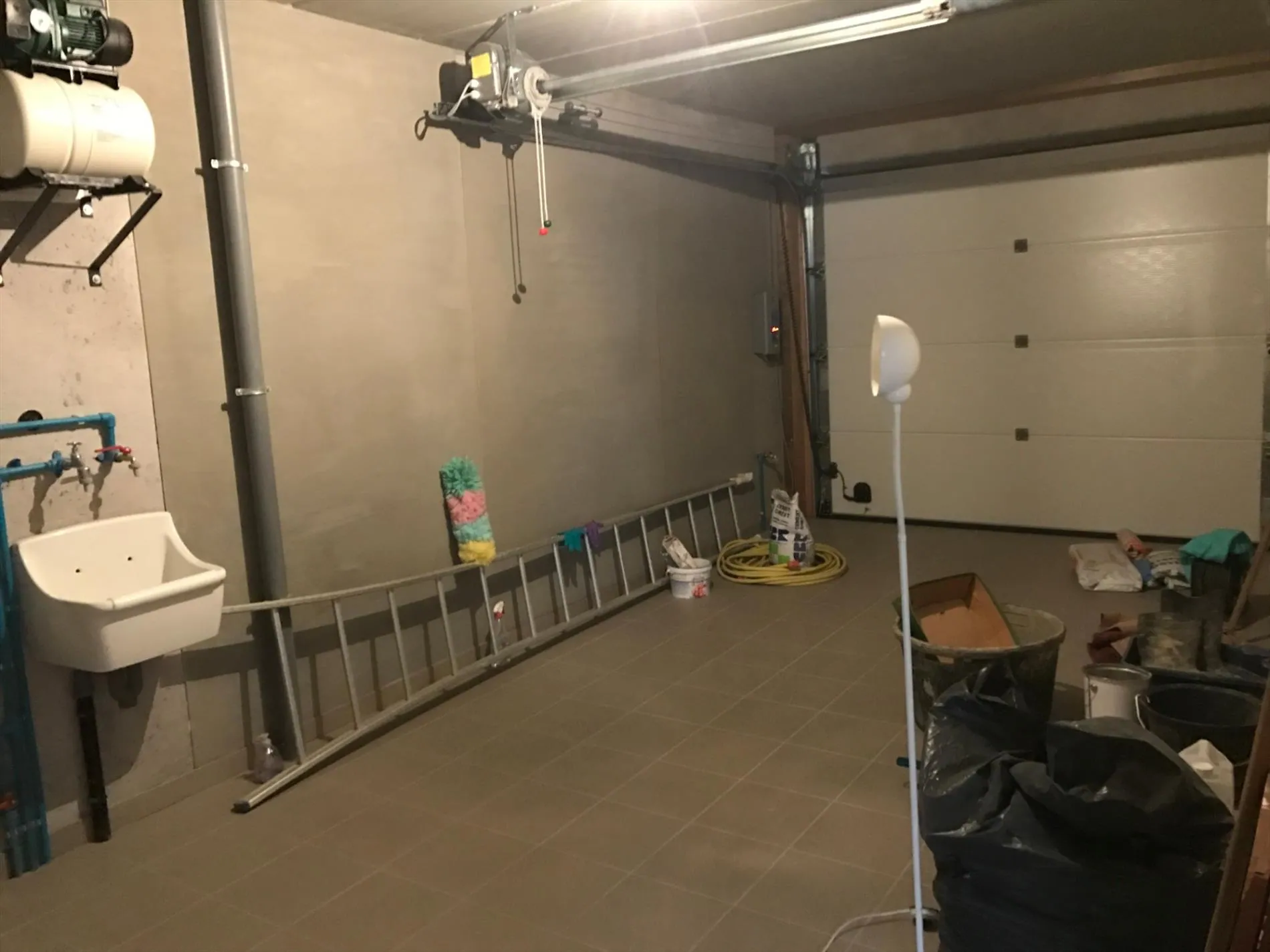 Gelijkvloers: inkomhal met gastentoilet - ruime leefruimte met open, ingerichte keuken - garage met automatische poort.
