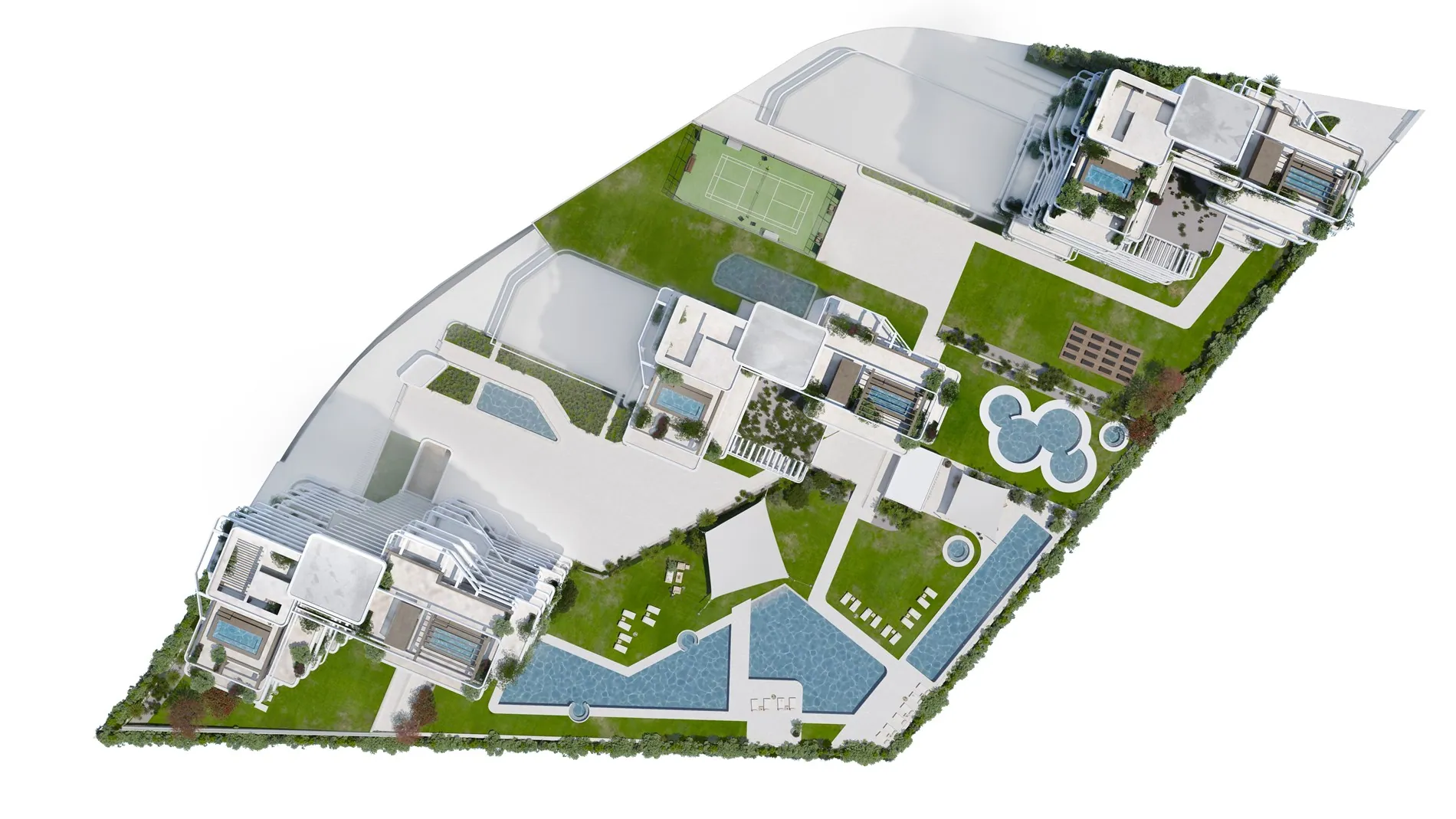De appartementen beschikken over vloerverwarming, energiezuinige aerothermische klimaatregeling en geavanceerde domotica voor verlichting, zonwering en temperatuurbeheer. De volledig uitgeruste keukens zijn voorzien van hoogwaardige apparatuur en composiete werkbladen, terwijl de badkamers zijn afgewerkt met luxe keramiek en geïntegreerde opbergoplossingen.