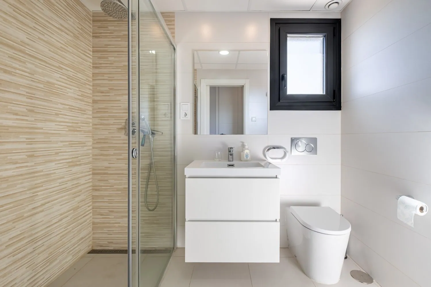 De open keuken is volledig uitgerust met hoogwaardige apparatuur en biedt een strakke, minimalistische uitstraling. Extra’s zoals een gezellige bar, geïntegreerde opbergruimte en kwaliteitsvolle afwerkingen maken deze woning compleet.