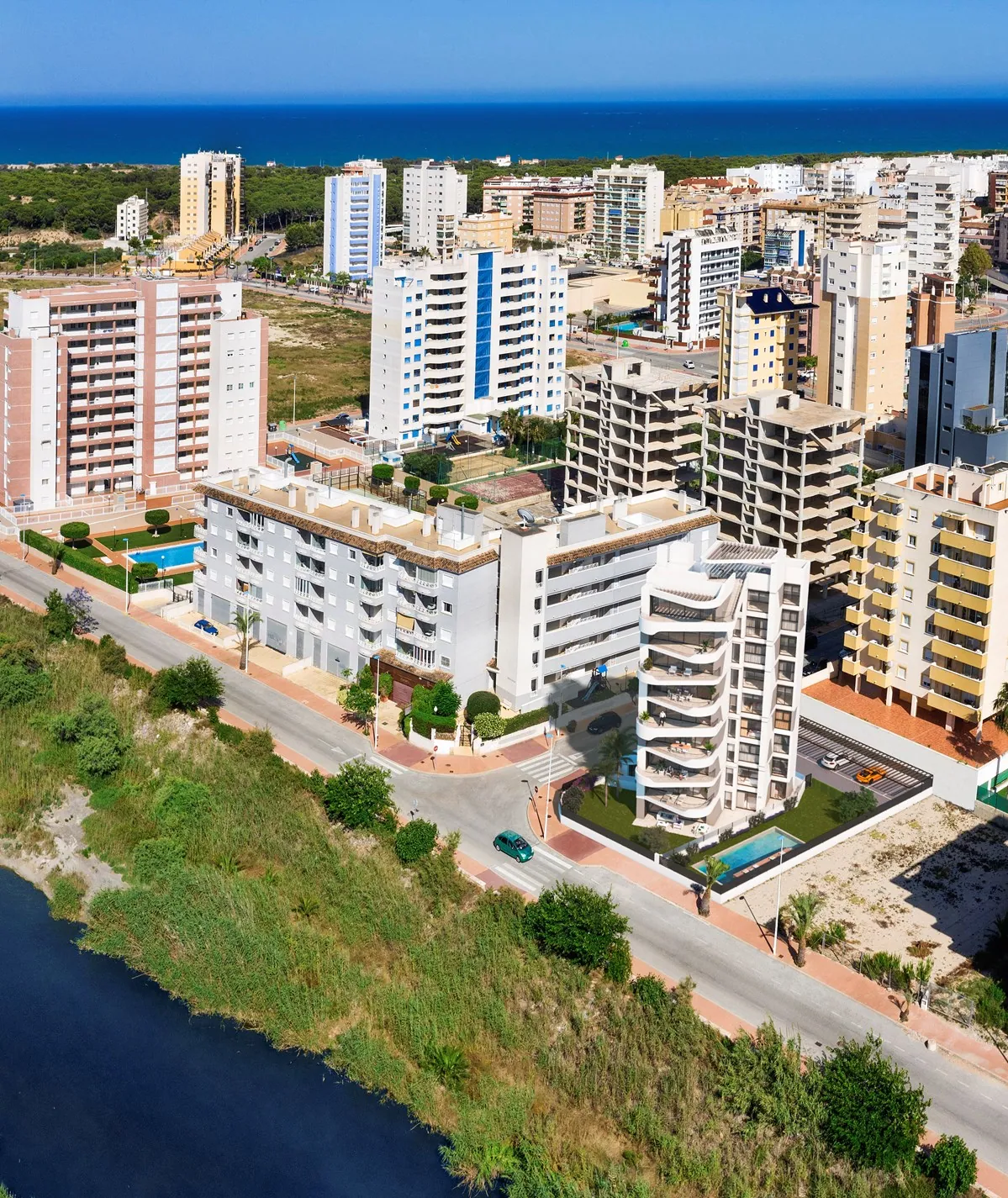 Royal Park River is een nieuw woonproject in het charmante Guardamar del Segura, in de provincie Alicante, gelegen op slechts 1,4 km van het strand. Het moderne gebouw telt slechts negen exclusieve appartementen — één per verdieping — wat zorgt voor optimale privacy en comfort.
