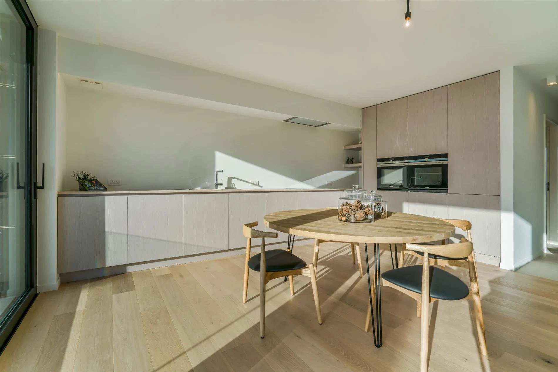 Deze buitengewone residentie, verdeeld over 4 bouwlagen, werd afgewerkt met duurzame en geselecteerde superieure materialen. De zuidgerichte terrassen vormen het verlengde van de leefruimte en bieden een intense buitenbeleving. De grote ramen zorgen bovendien voor een lichtrijk geheel die het buitengevoel ook in je woonkamer brengt.