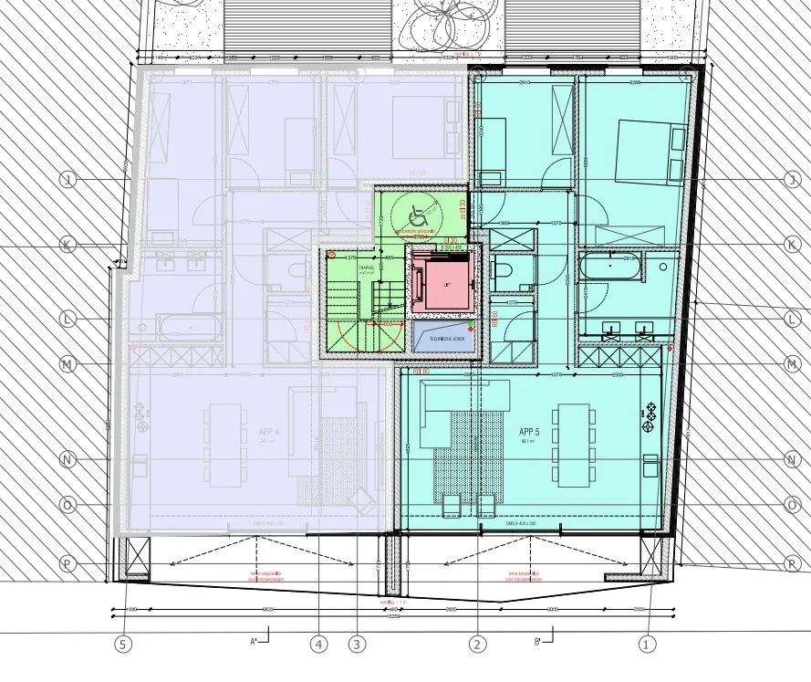 Een stijlvol woonproject bestaande uit 1 handelsruimte, 6 luxueuze appartementen, 13 garages en 6 autostaanplaatsen.