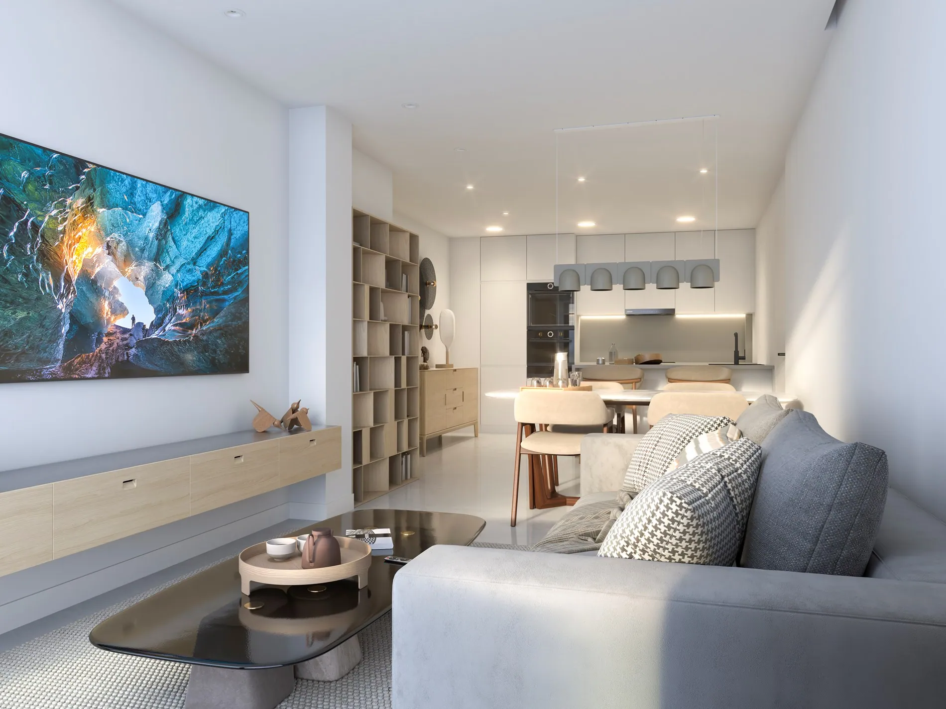 De appartementen zijn ontworpen met oog voor comfort, licht en een aangename leefervaring. De open woonruimtes sluiten naadloos aan op een volledig ingerichte keuken en geven toegang tot een privéterras, ideaal om te ontspannen in het zachte klimaat van de Costa Blanca. Grote raampartijen zorgen voor een aangename lichtinval en een ruimtelijk gevoel.