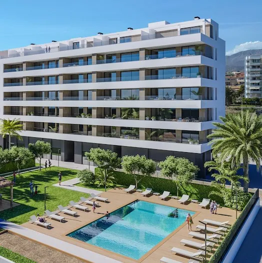 Deze exclusieve residentie wordt gebouwd op een prachtige locatie en beschikt over toeristische en residentiële appartementen met 2 slaapkamers, dit alles op wandelafstand van het strand en het pittoreske oude centrum van Villajoyosa.