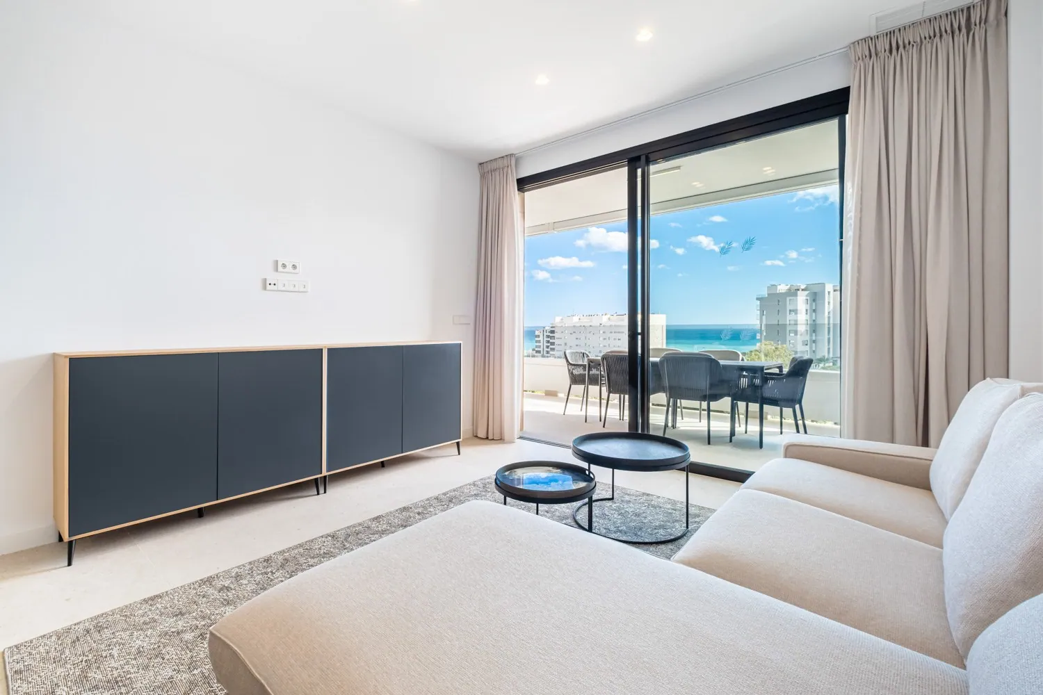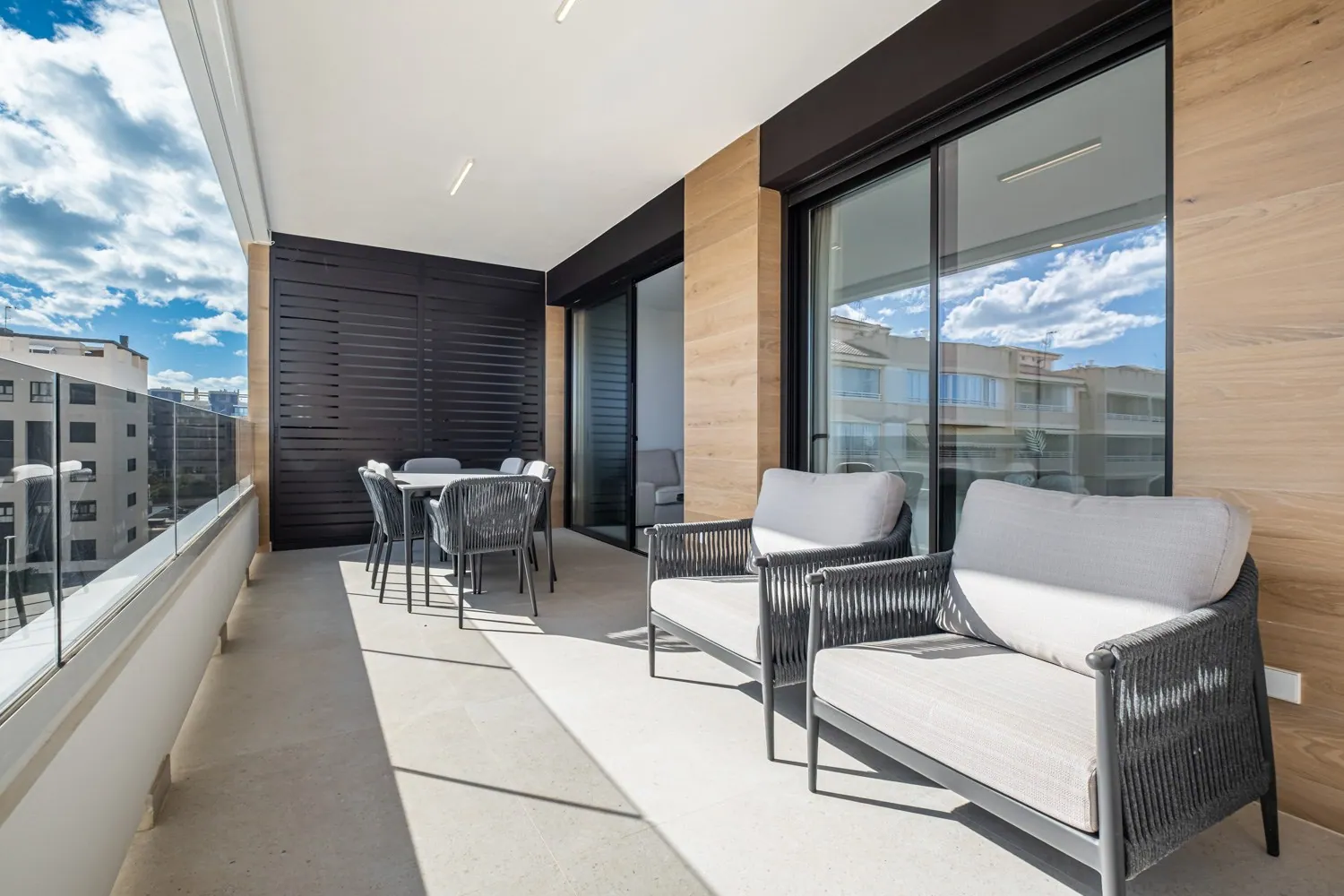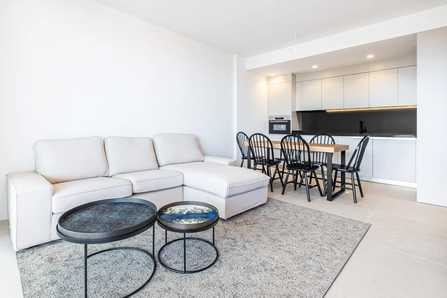 Het appartement is volledig bemeubeld en afgewerkt met topmaterialen van Porcelanosa, inclusief een ondergrondse staanplaats met grote berging.