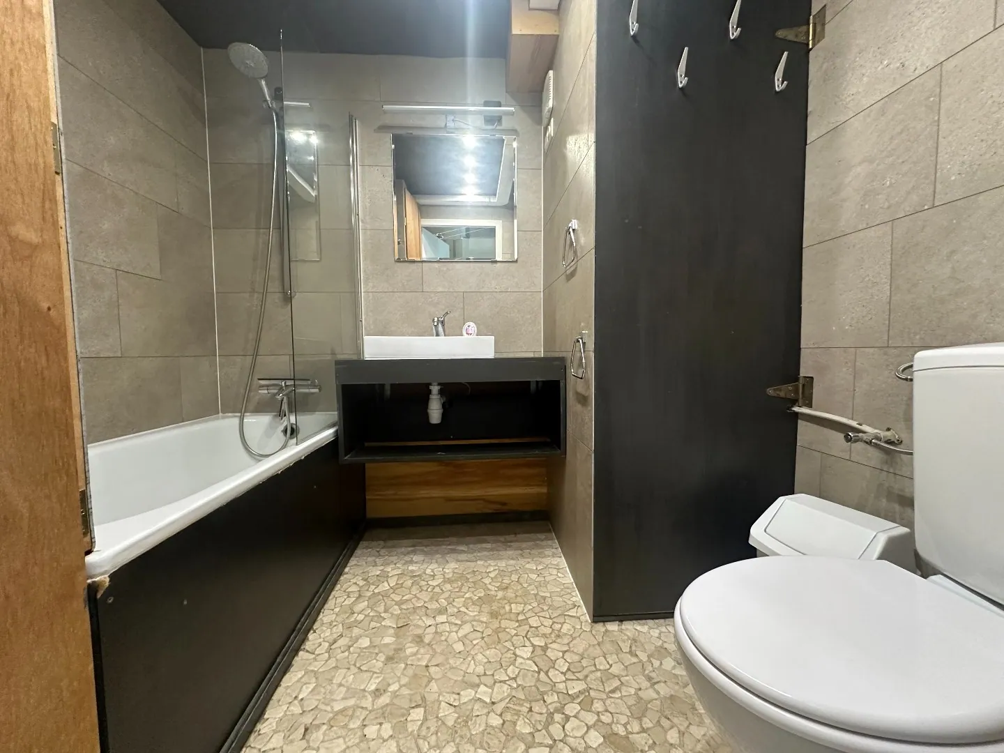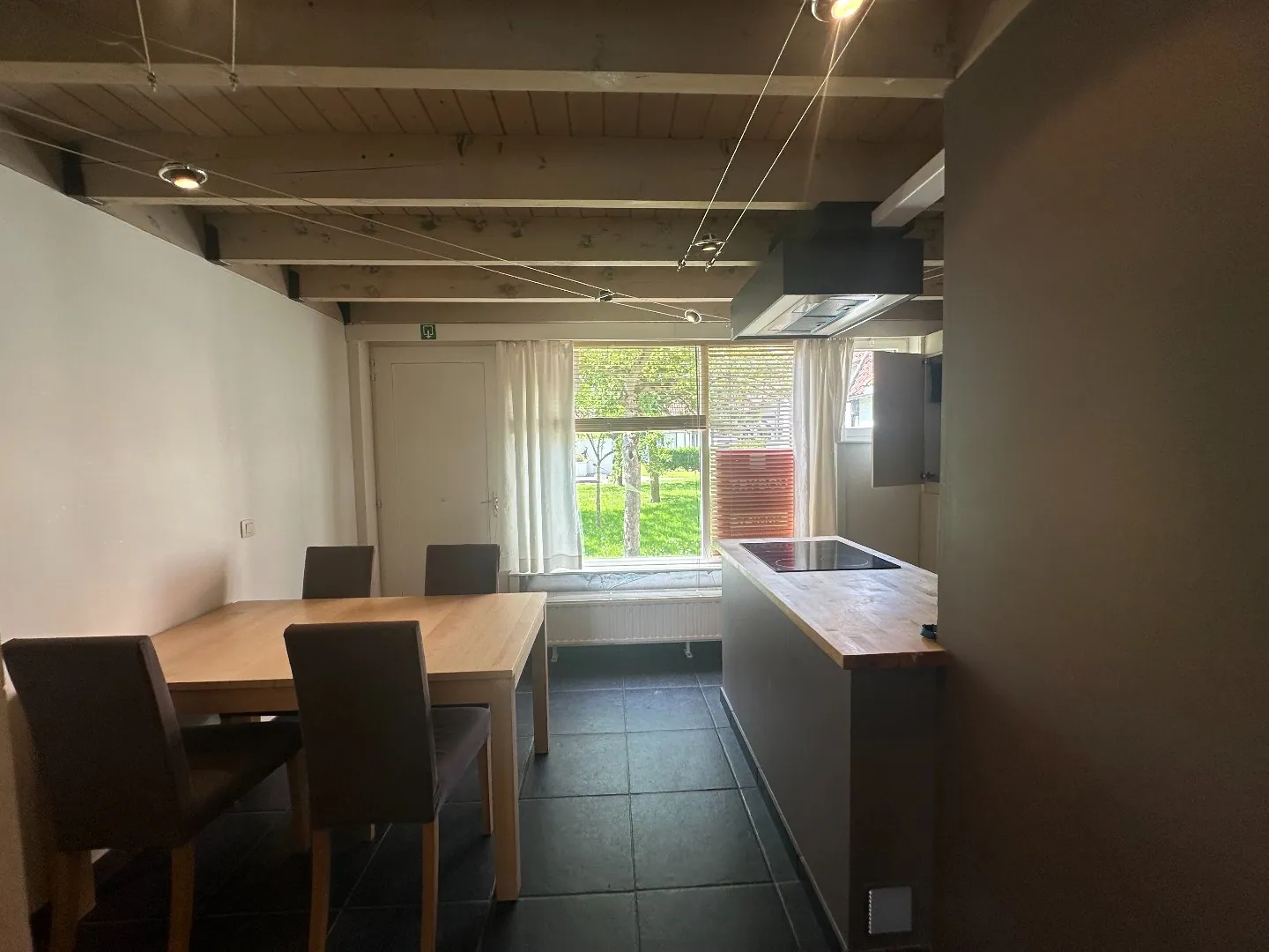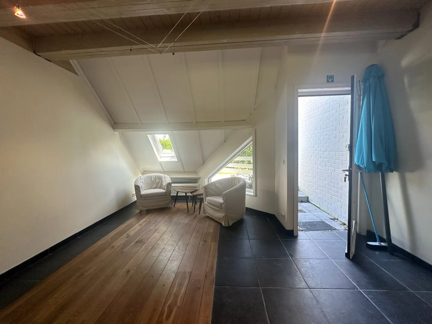Leefruimte met open, volledige ingerichte keuken - eetplaats - toilet - badkamer met ligbad (mogelijkheid tot douche) - 2 slaapkamers - gezellige tuin.