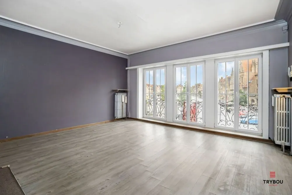 Eerste verdiep: drie ruime kamers - badkamer met douche, bad, lavabo en toilet - ruime slaapkamer met uitgestrekt zicht over de Grote Markt - apart toilet
