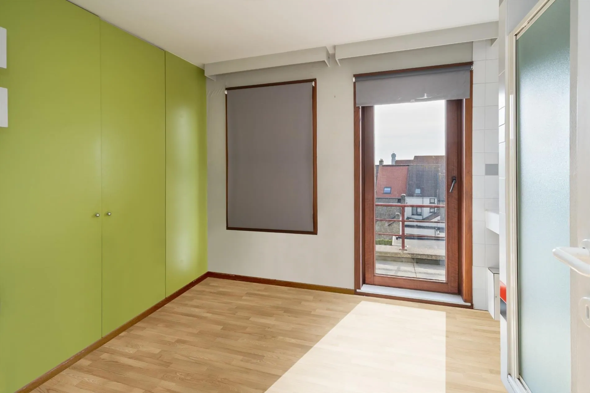 3de verdieping: lichtrijke leefruimte met zicht op het stadspark - open, ingerichte keuken - slaapkamer met douche en wastafel