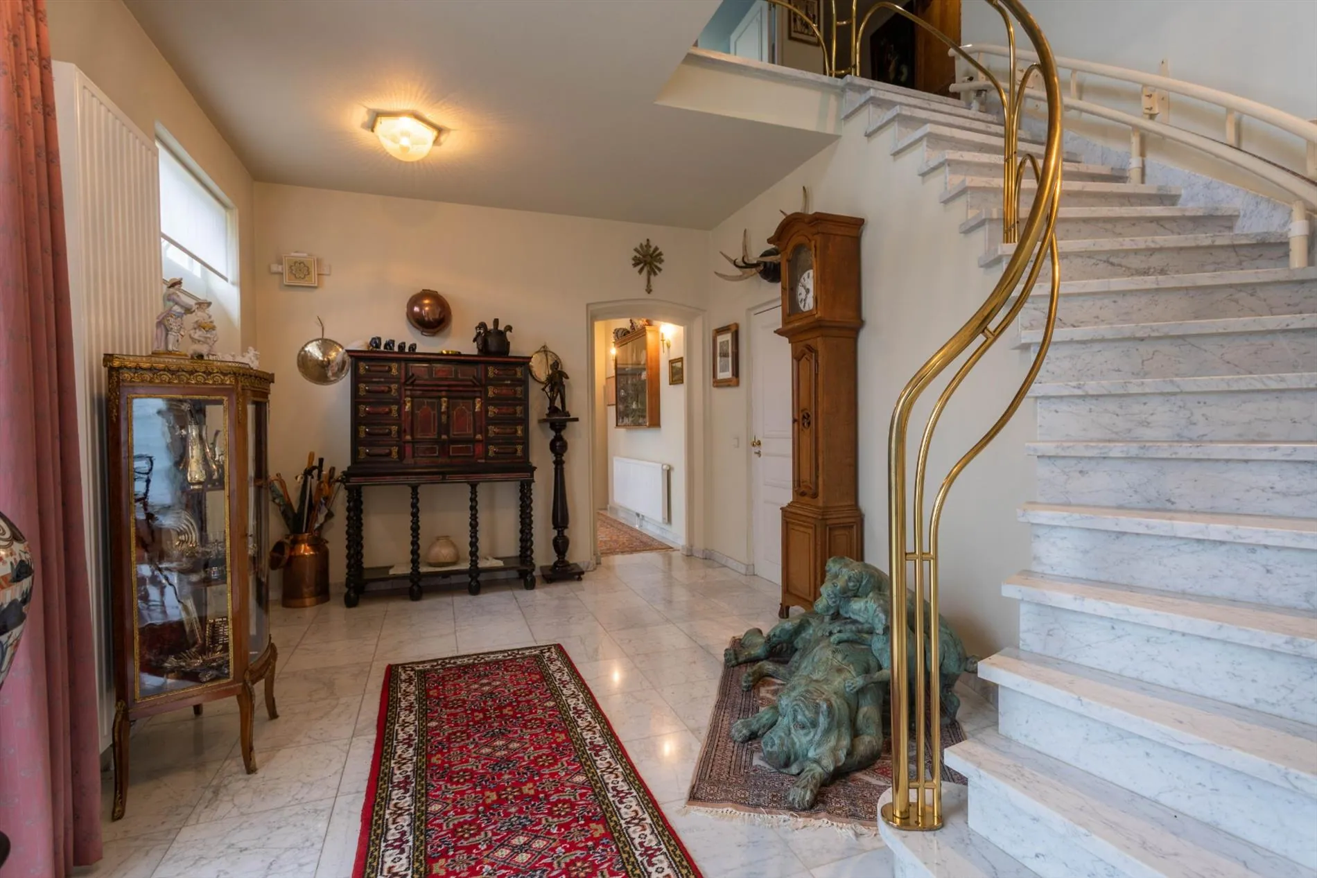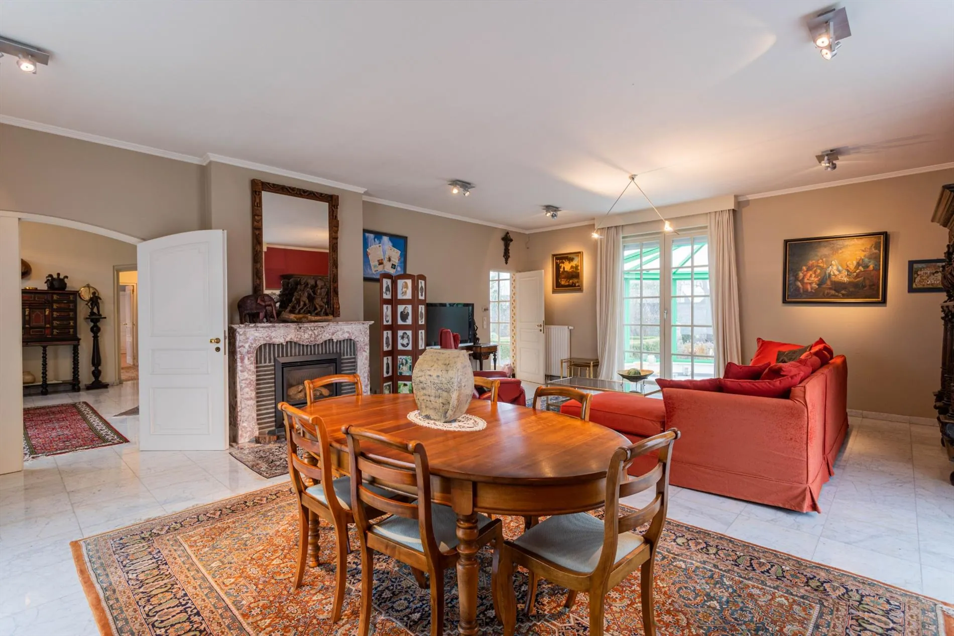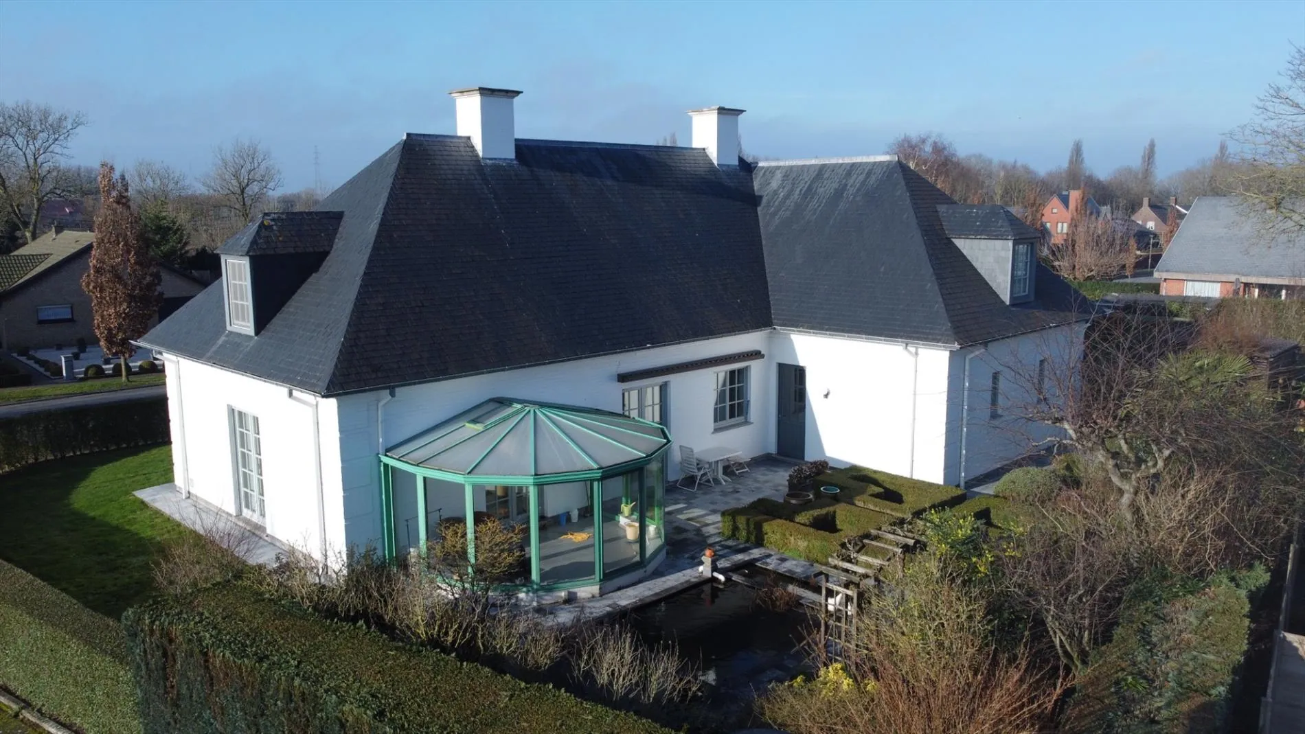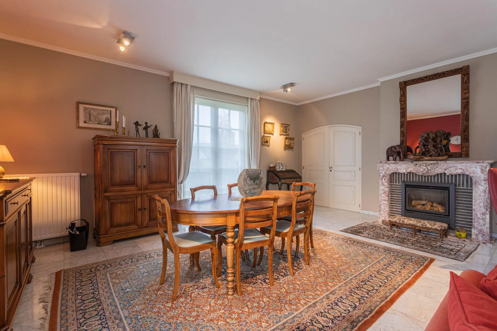 Gelijkvloers: Royale inkomhal met vestiaire en gastentoilet - riante lichtrijke leefruimte met gascassette - aansluitende tuinkamer - ruime, volledig ingerichte woonkeuken met koele berging - achterinkom - ruime voorraadberging - dubbele garage - ruime slaapkamer/bureau - badkamer.