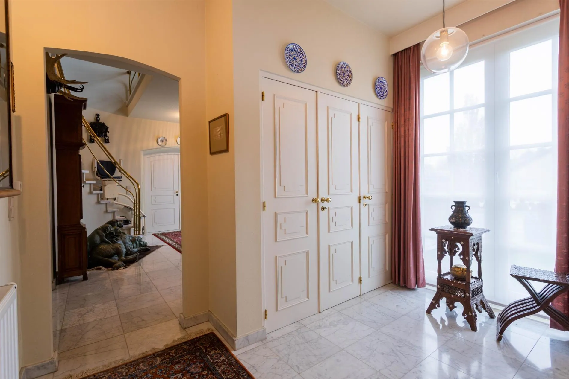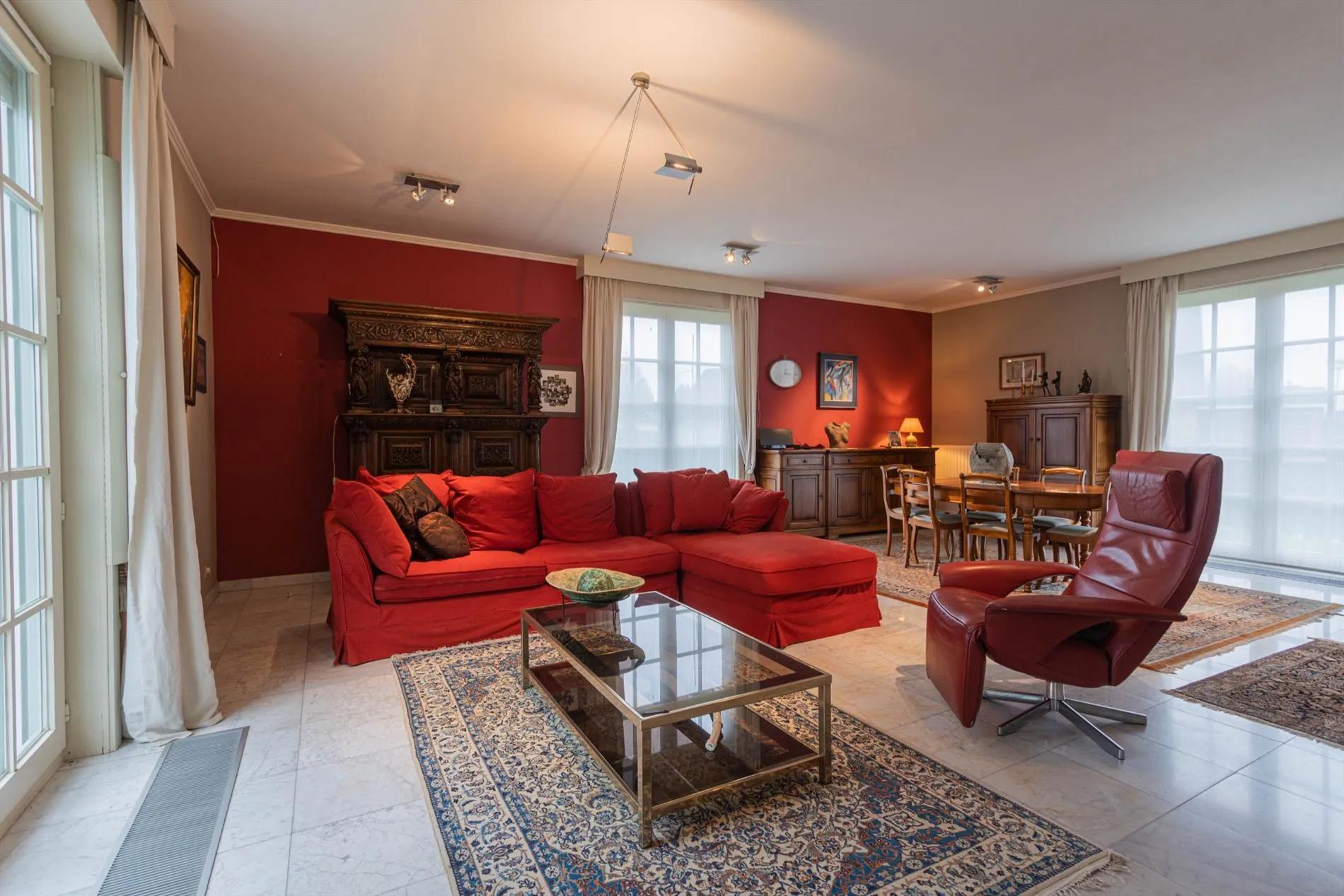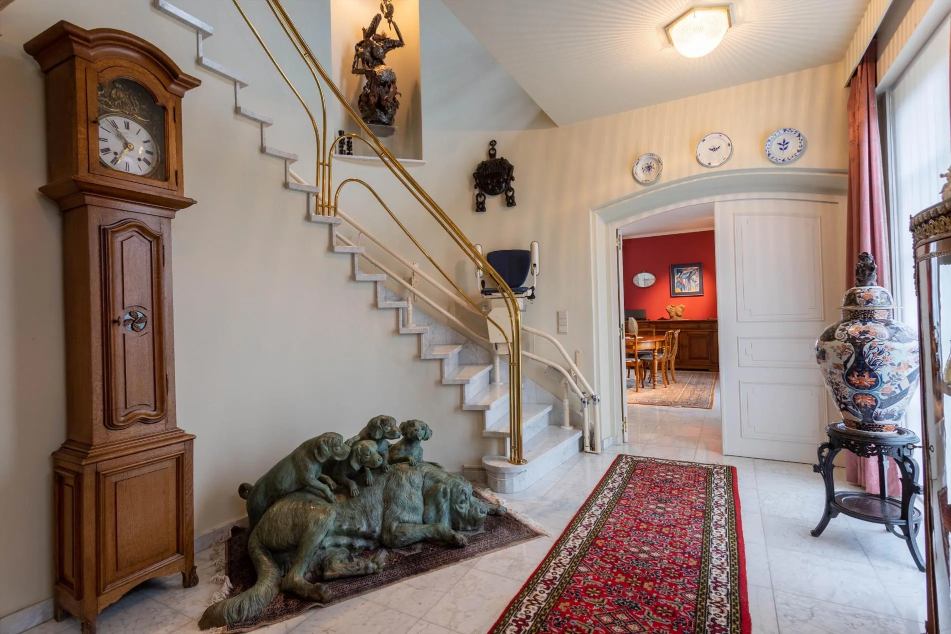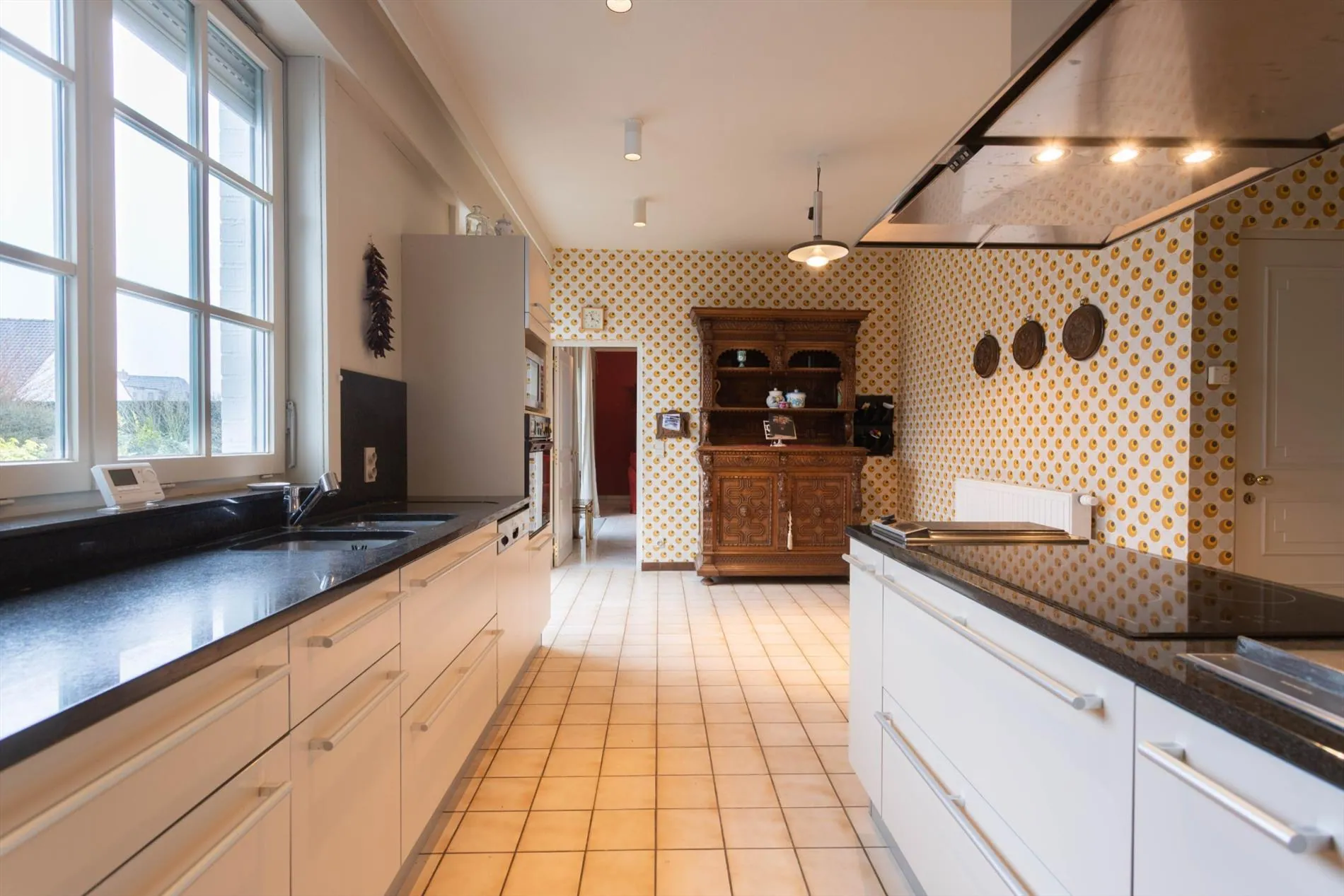 Gelijkvloers: Royale inkomhal met vestiaire en gastentoilet - riante lichtrijke leefruimte met gascassette - aansluitende tuinkamer - ruime, volledig ingerichte woonkeuken met koele berging - achterinkom - ruime voorraadberging - dubbele garage - ruime slaapkamer/bureau - badkamer.