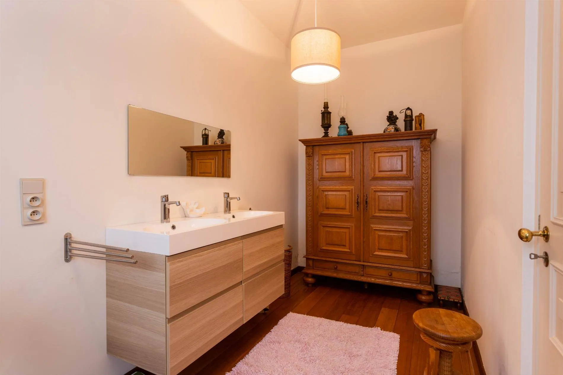 Verdieping: Riante nachthal - 3 ruime slaapkamers - berging - ruime badkamer met bad, douche, toilet en dubbele wastafel.