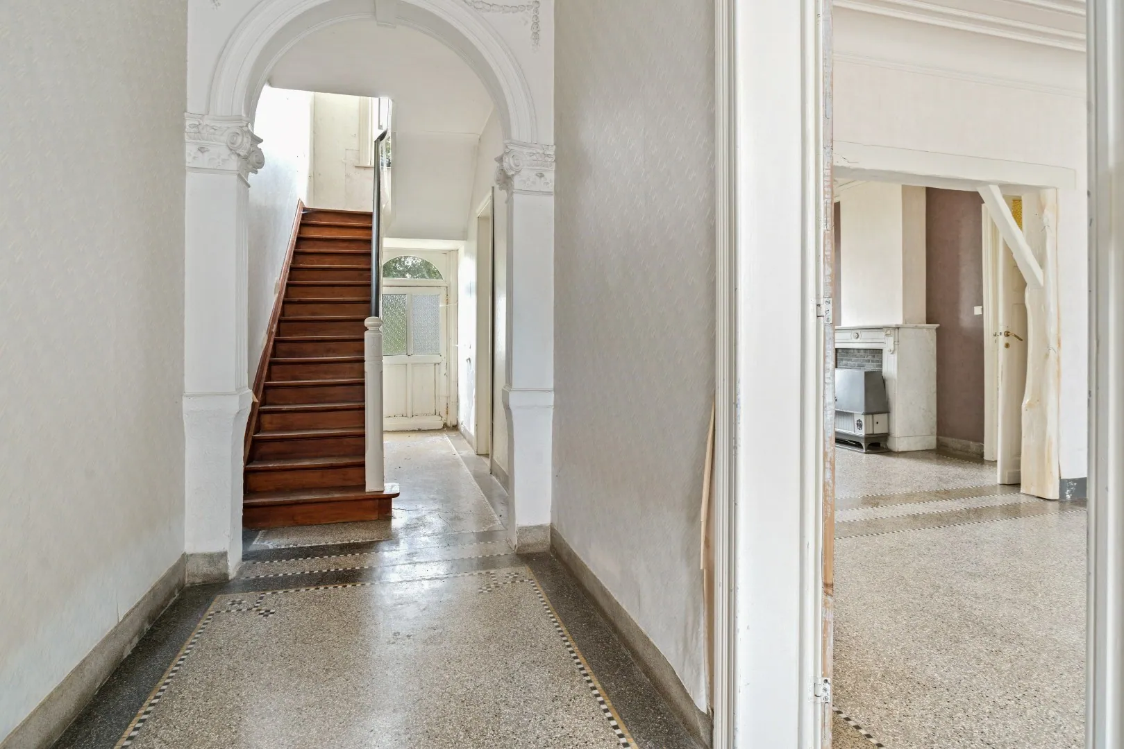 Gelijkvloers: inkomhal - ruime leefruimte met open haard, zit- en eetkamer - ruime leefkeuken - voorkamer - slaapkamer/bureau - badkamer met douche en lavabo - apart toilet - waskamer.