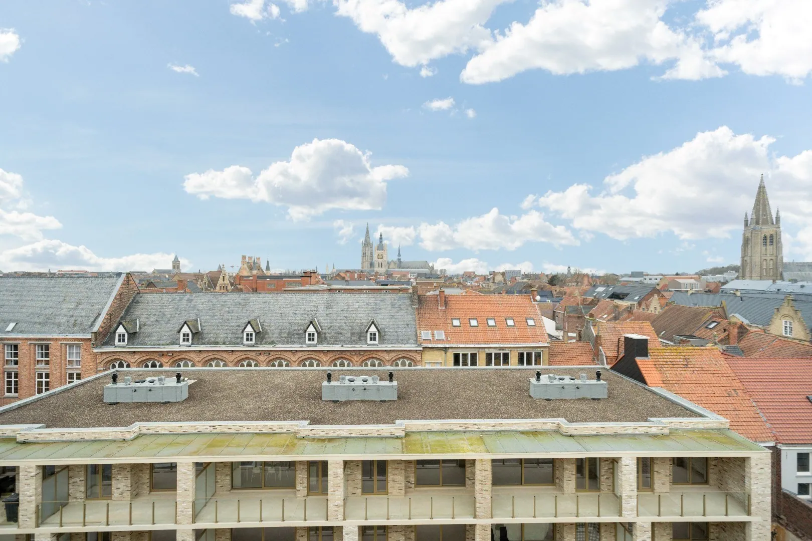 Dit appartement is gelegen op de 5 de verdieping met zicht over heel Ieper en vestingen.