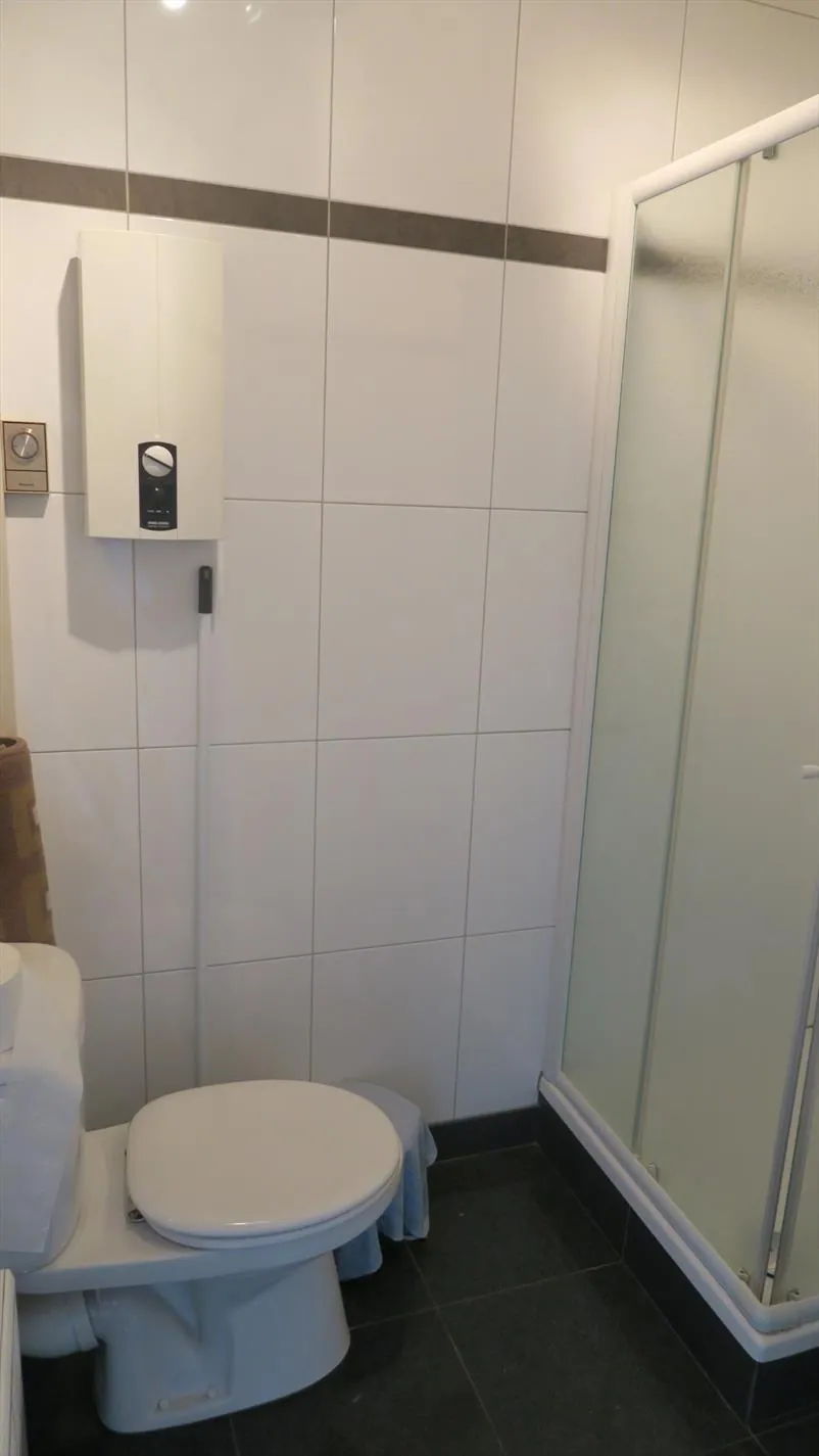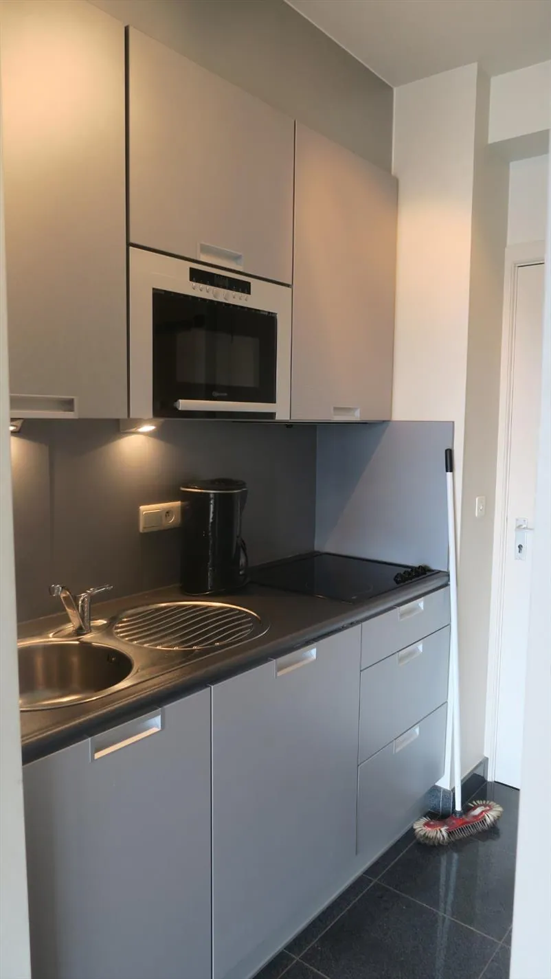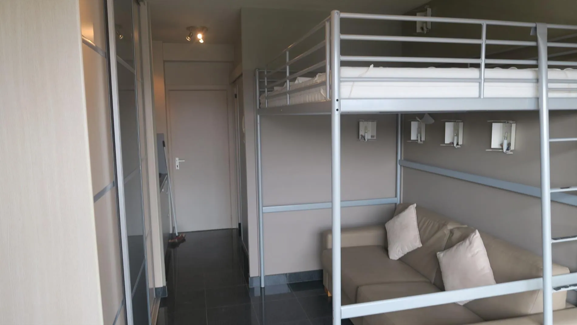Gemeubelde studio bestaande uit: inkomhal met keuken - lichtrijke leefruimte met aansluitend zongericht terras - badkamer met douche, toilet en wastafel.