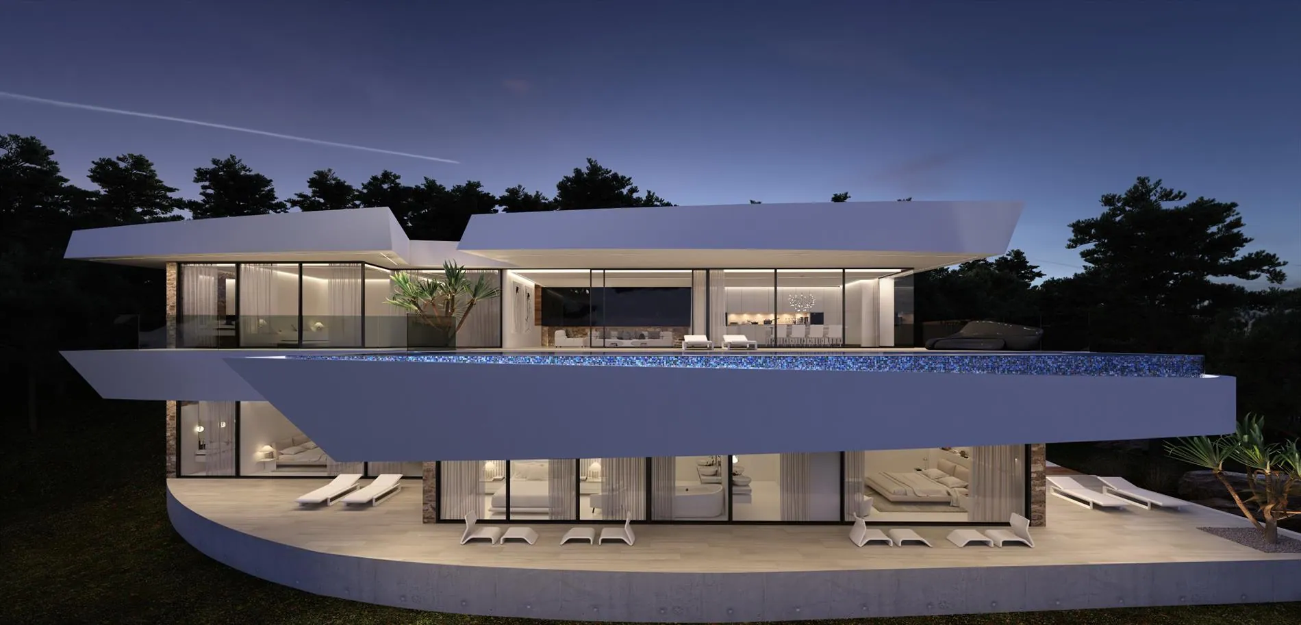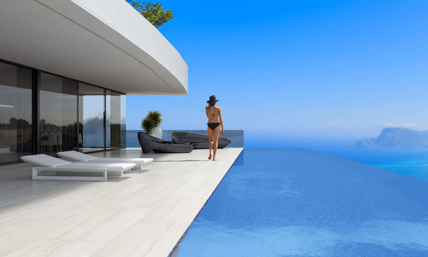 Vanop het eerste verdiep kan je tevens ook genieten van het ruime infinity zwembad.