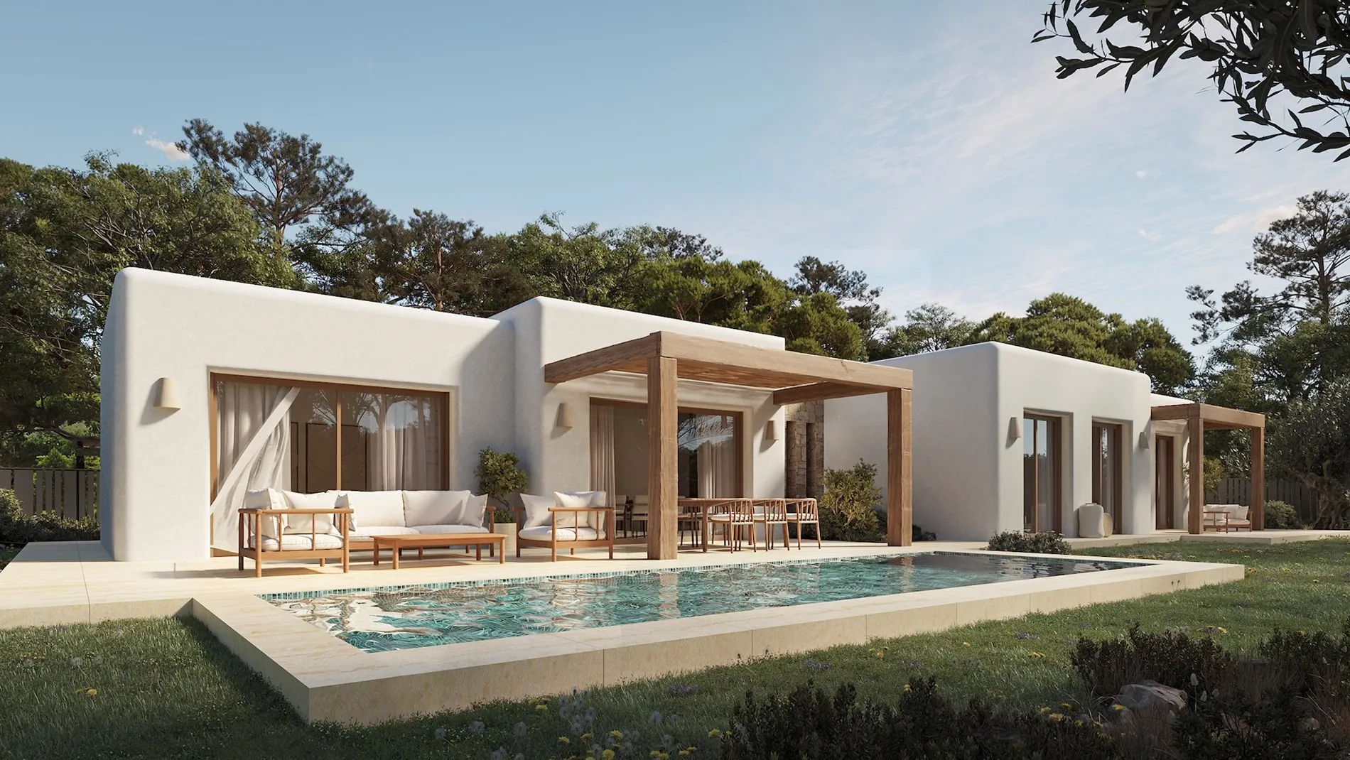 Het ontwerp is geïnspireerd op de Ibiziaanse architectuur, met natuurlijke materialen, strakke lijnen en een warme, moderne uitstraling. De interieurs zijn licht, open en functioneel, met een naadloze overgang naar het buitenterras. De bouwkwaliteit is hoogstaand en energie-efficiënt, zodat je zonder zorgen kunt genieten van het heerlijke mediterrane klimaat.