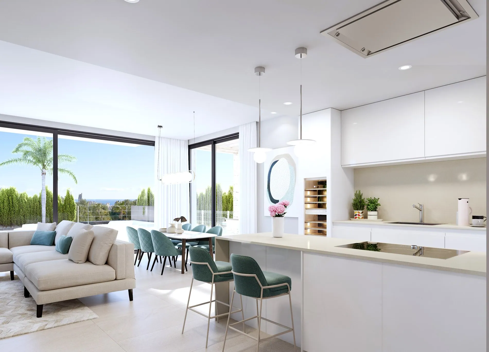 In de gewilde Sierra Cortina wijk, in het charmante Finestrat nabij Benidorm, vind je de prachtige residentie SEA VIEW 5. Deze moderne nieuwbouwvilla’s combineren luxe, comfort en een adembenemend zee- en bergzicht.