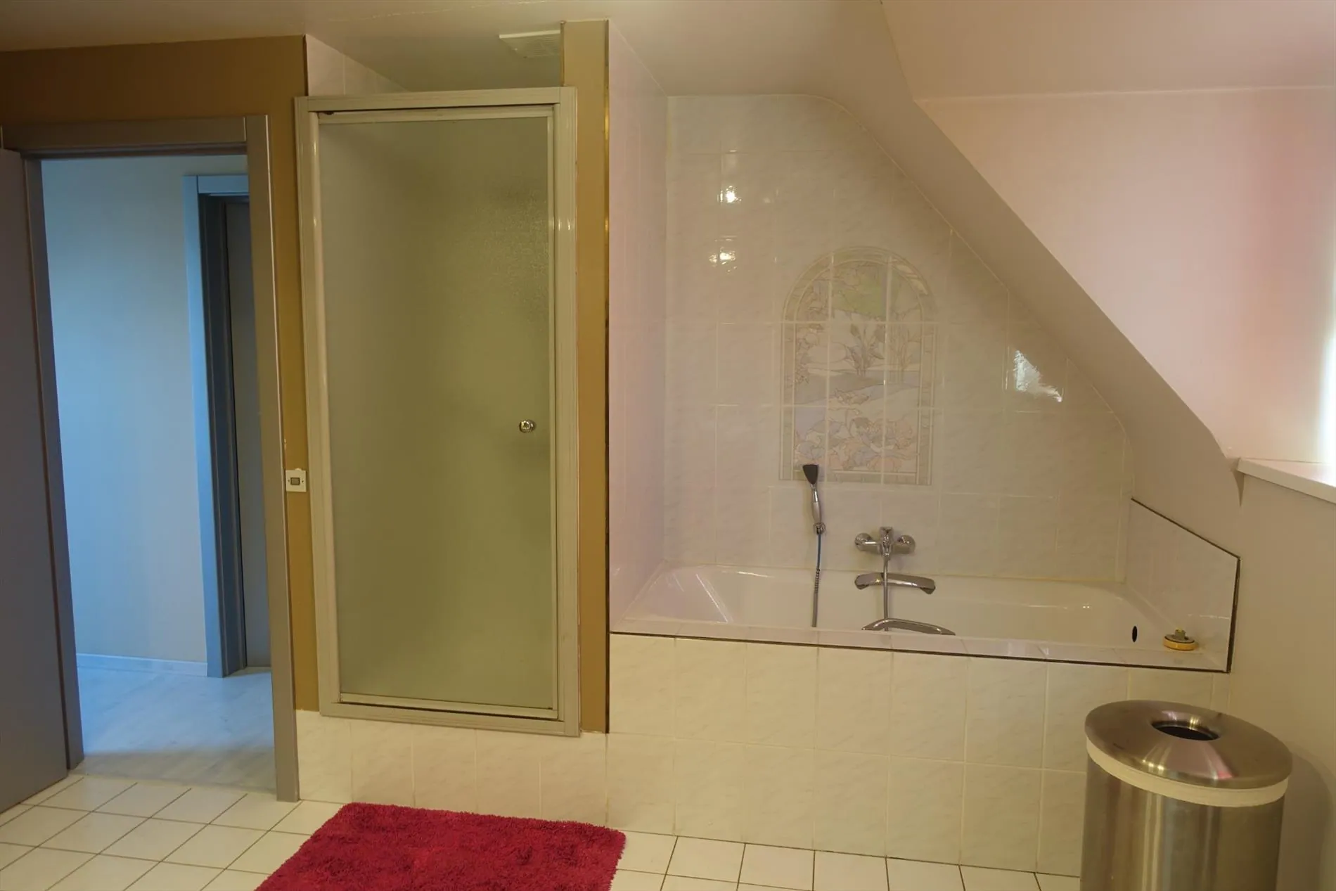 Verdieping: Nachthal - 3 ruime slaapkamers - ingerichte badkamer met bad, douche, dubbele wastafel en toilet - dressing.