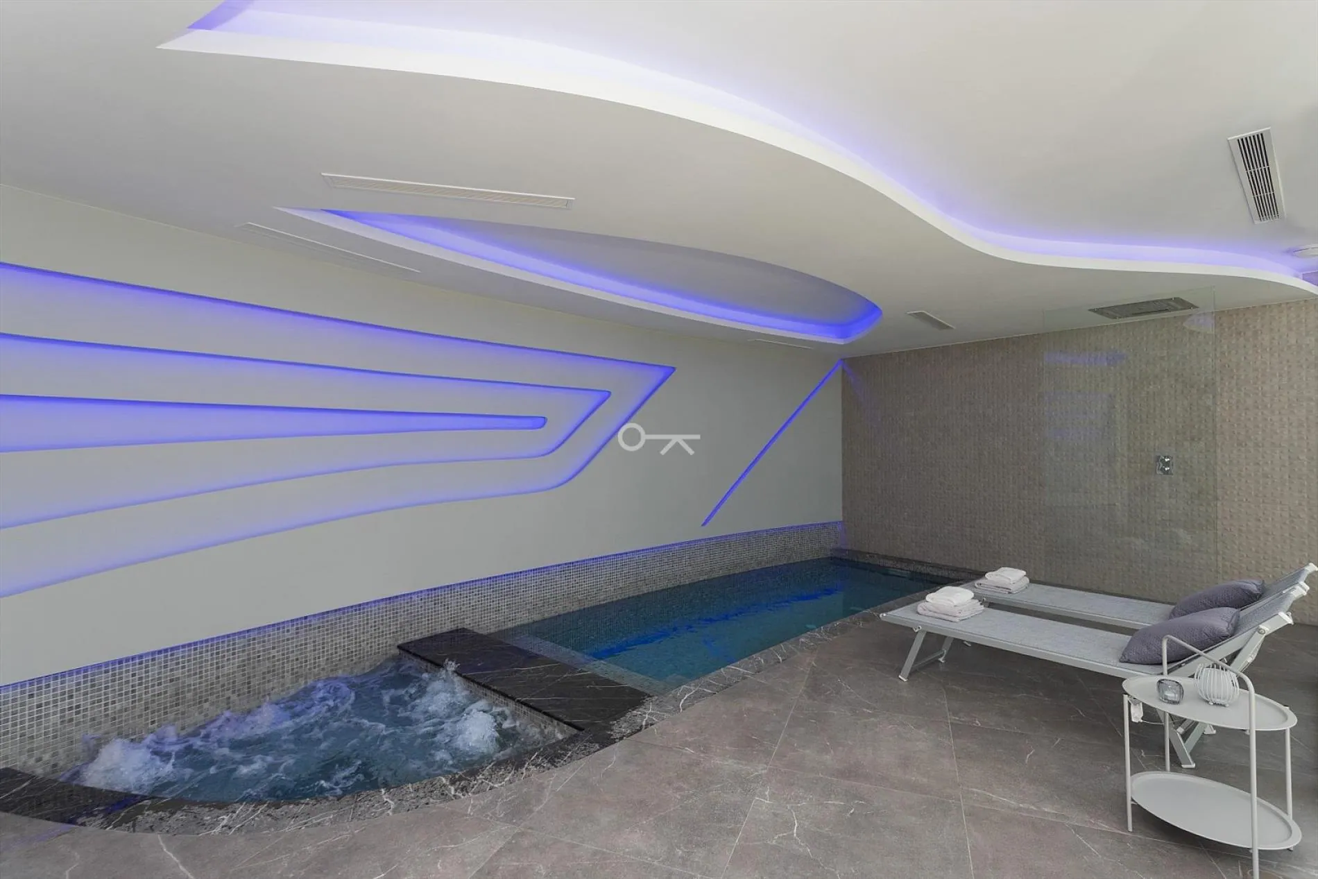 In de semi-kelder vindt u een bioscoop, een wasruimte, een berging/technische ruimte, een fantastische spa met een verwarmd binnenzwembad, jacuzzi, Turks stoombad, douche en toilet. Dit niveau geniet van natuurlijk licht en toegang tot een buitenterras.