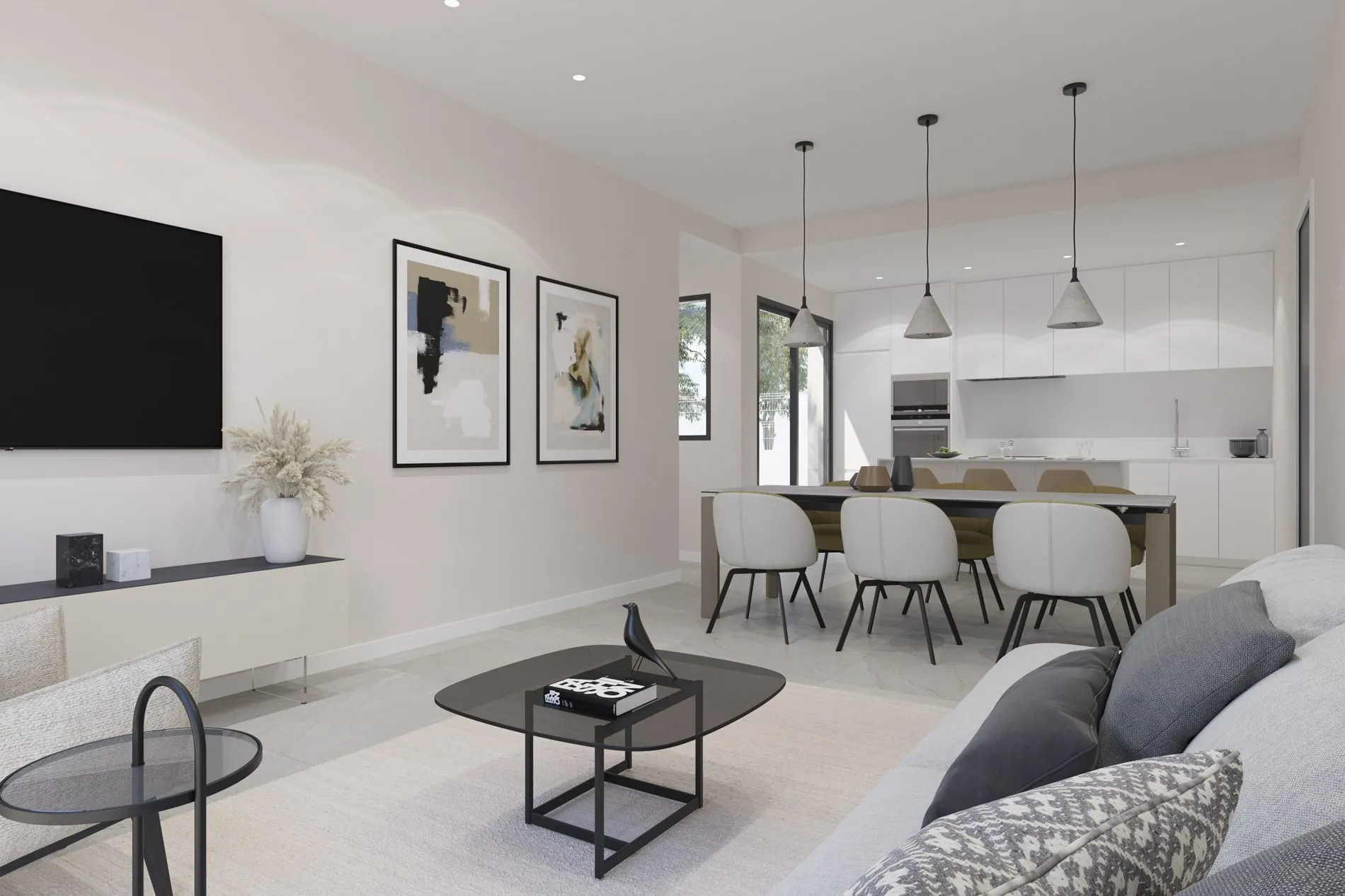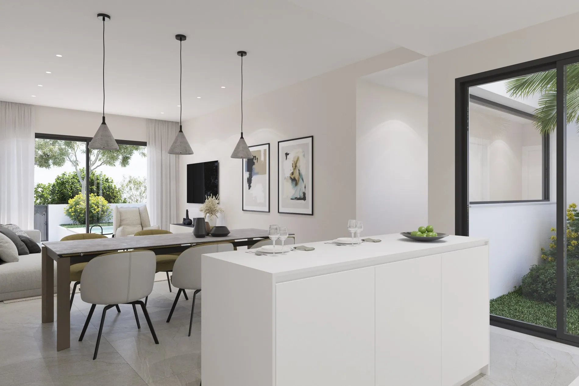 Elke woning beschikt over 3 slaapkamers, 2 badkamers, een open keuken, een ruim solarium en een privézwembad in een eigen tuin. Dankzij het doordachte ontwerp leef je hier op één niveau, met veel licht en ruimte. Buiten geniet je van een groot terras van maar liefst 123 m², inclusief een BBQ-zone en privéparking.