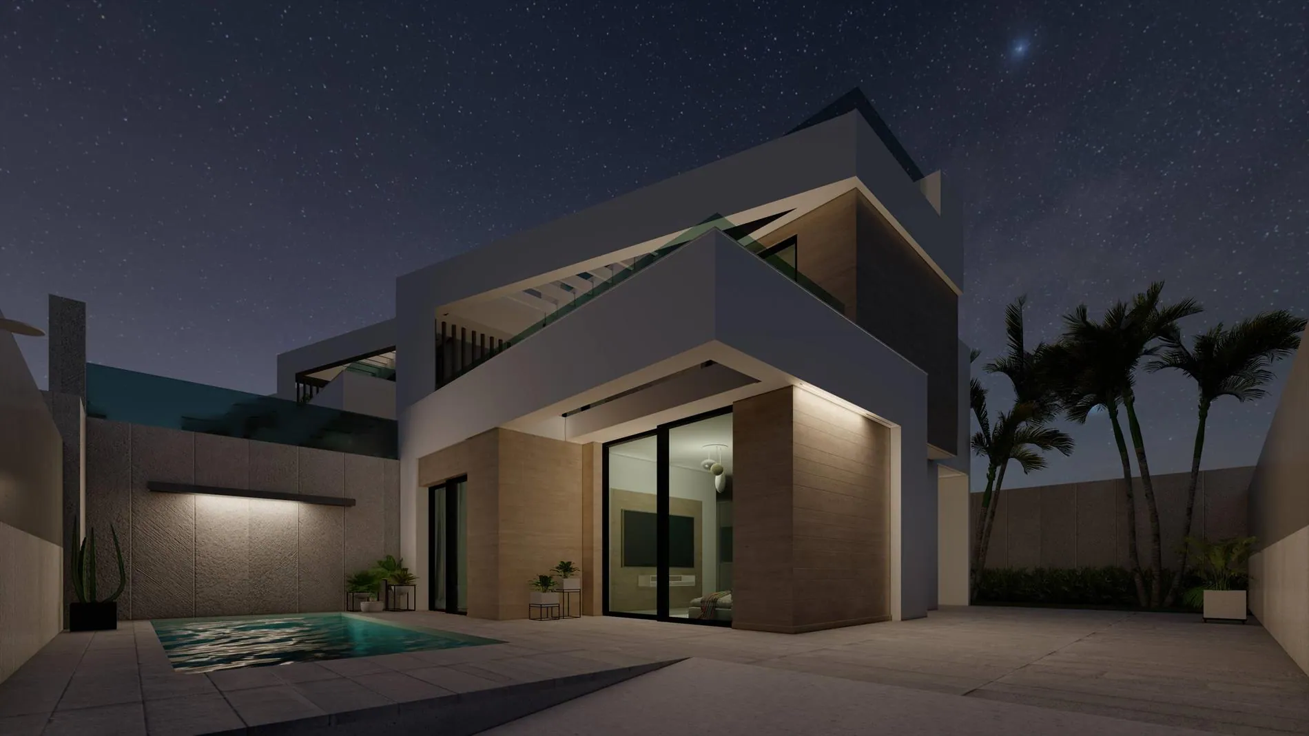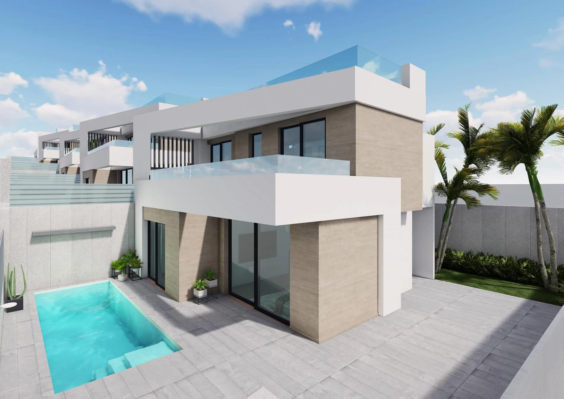 De villa's hebben een moderne uitstraling en werden afgewerkt met een solarium, eigen tuin en privé zwembad.