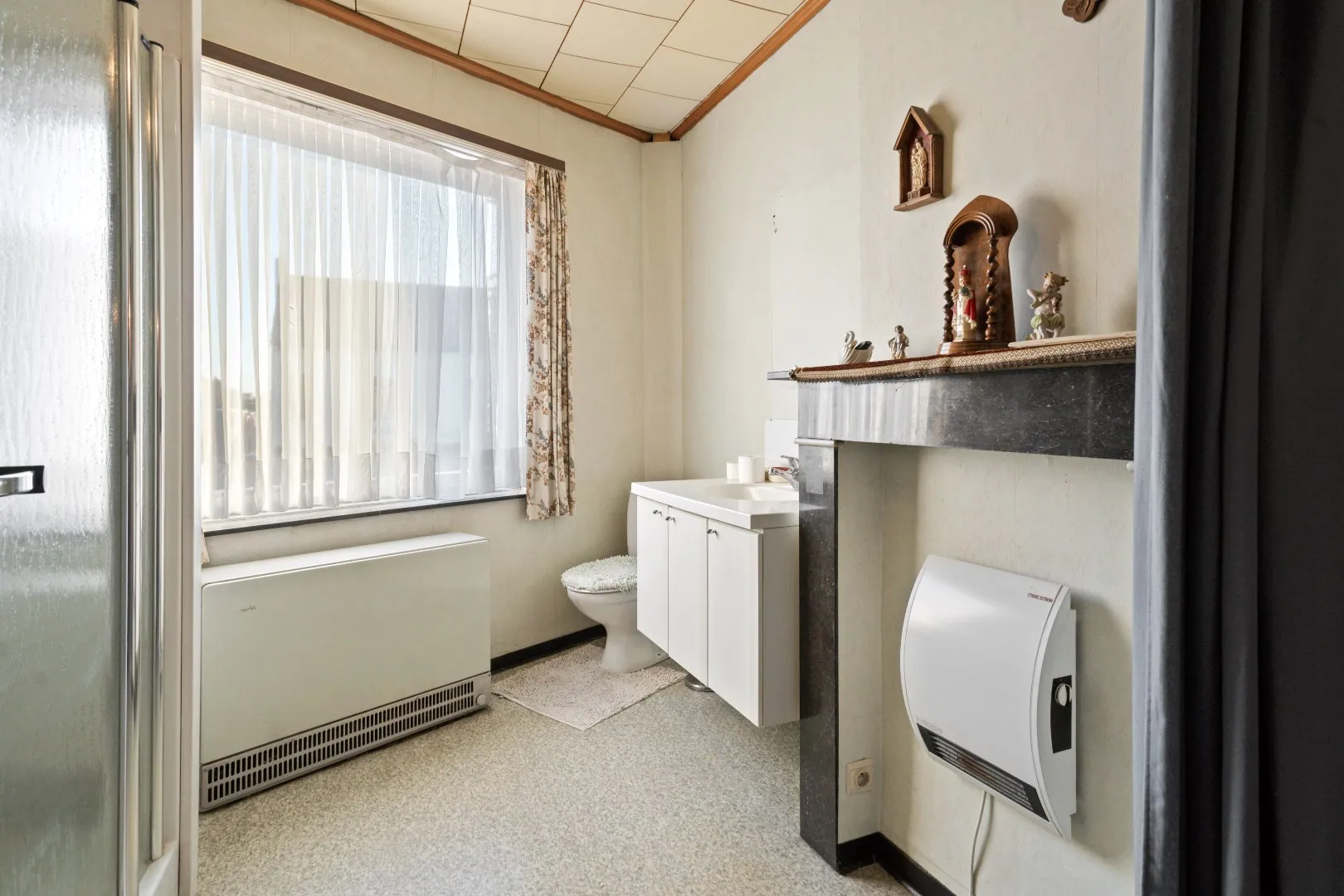 Gelijkvloers: Inkomhal - garage met automatische sectionaalpoort - voormalige handelsruimte - ruime leefruimte - keuken - badkamer met douche en wastafel - gastentoilet - slaapkamer