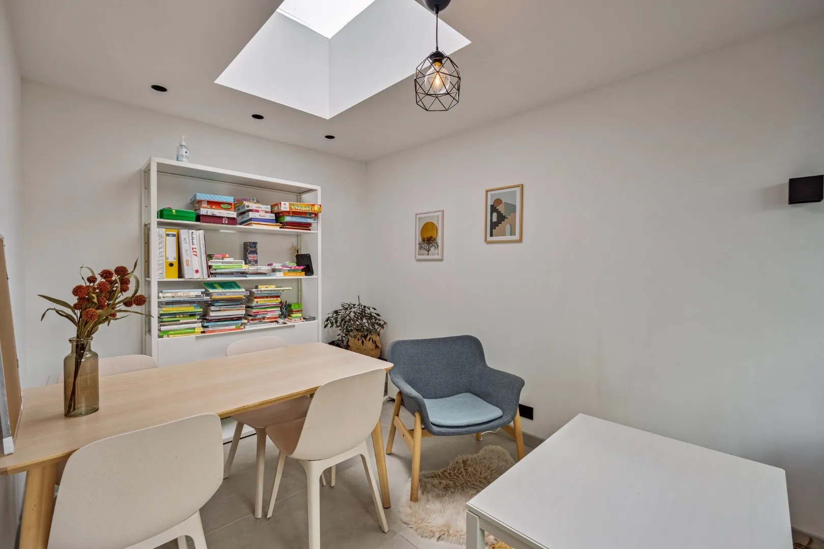 Gelijkvloers: inkomhal met gastentoilet - praktijkruimte met wachtzaal - lichtrijke leefruimte met zit- en eethoek - ruime leefkeuken - grote berging/wasplaats met douche