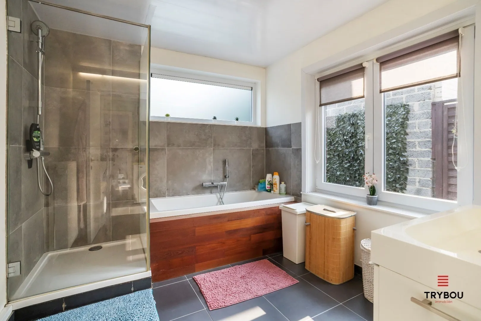 Gelijkvloers: inkomhal - lichtrijke leefruimte - ingerichte keuken - afgewerkte badkamer - meerdere tuinbergingen- kelder - grote tuin.