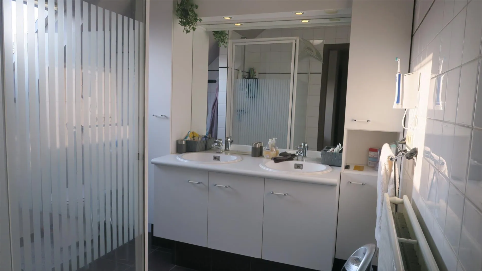 Verdieping: nachthal - 3 slaapkamers - badkamer met toilet, douche en wastafel.